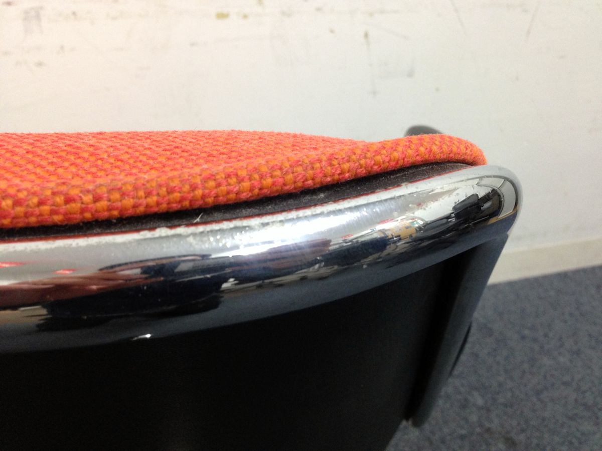 - かなり強い濃い黄ばみ・変色が商品全体にある。(例、座面・背もたれ、脚部等にある。)