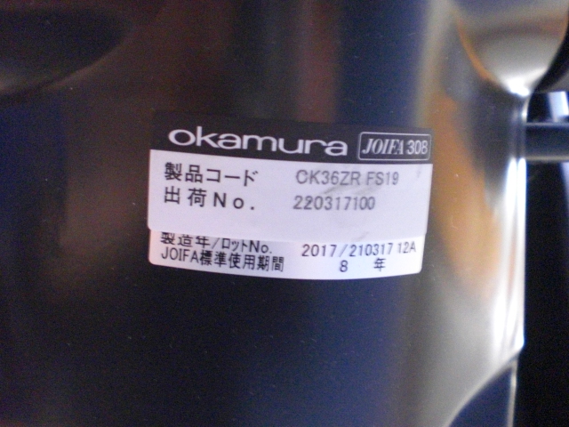 【中古】 カロッツァチェア CK36ZR FS19 オカムラ/okamura 肘無ハイバックチェア 218135