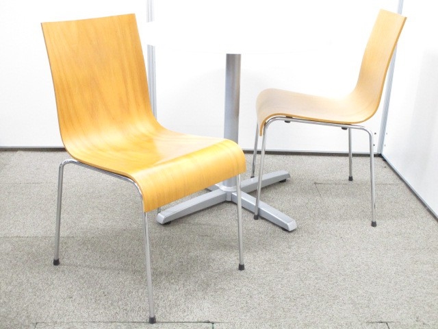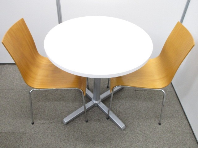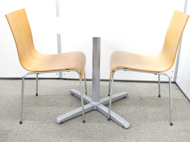 自然な感じが漂う丸テーブルと木目調スタッキングチェア