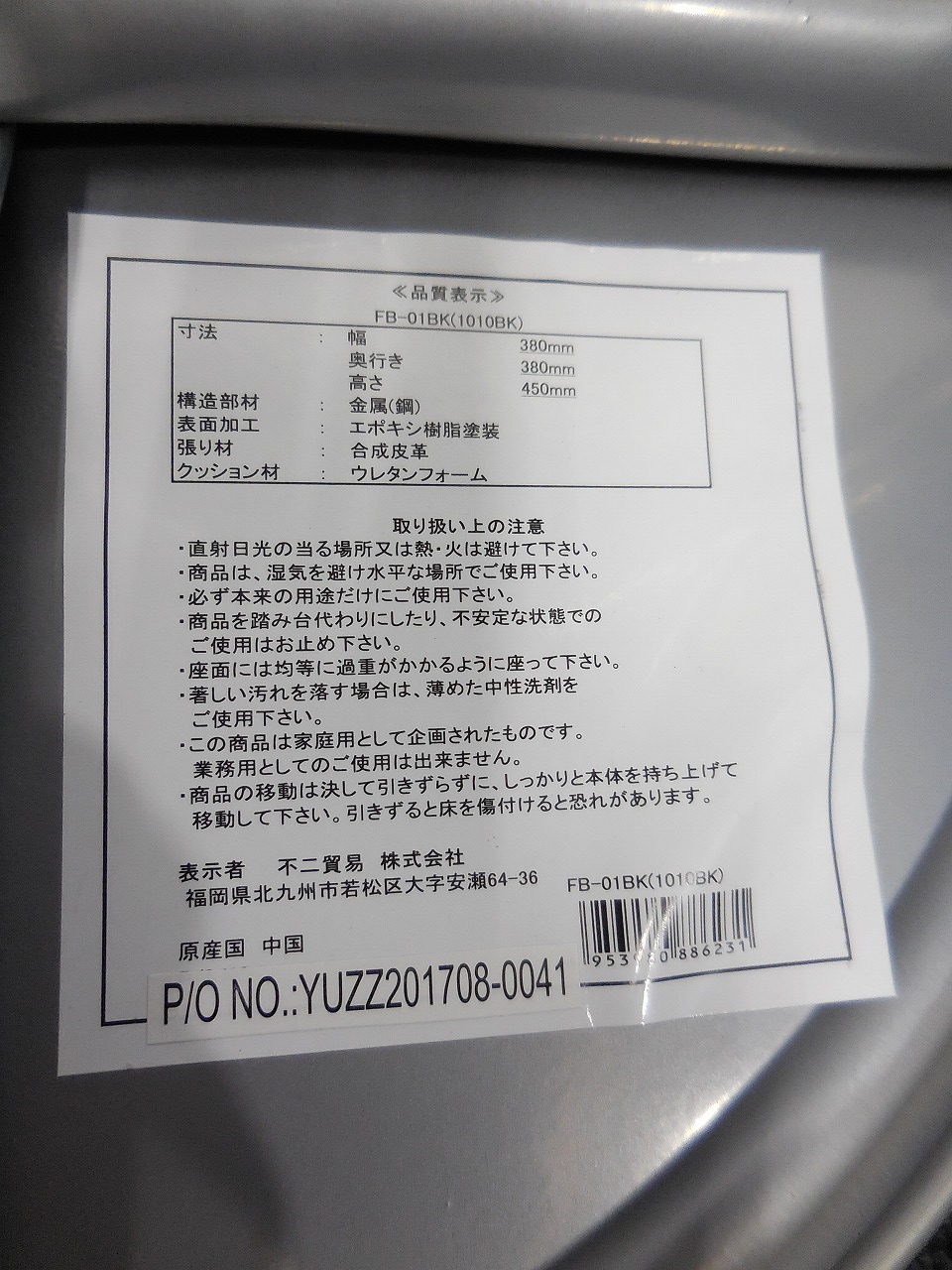 新品/即日持ち帰り可能 急遽必要な時でも大丈夫! ◆不二貿易◆FB-01BK ※本体:合成皮革・ウレタンフォーム・スチール/重量約1kg- 横浜本店