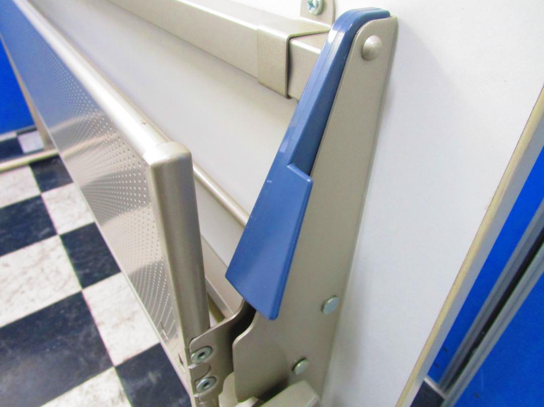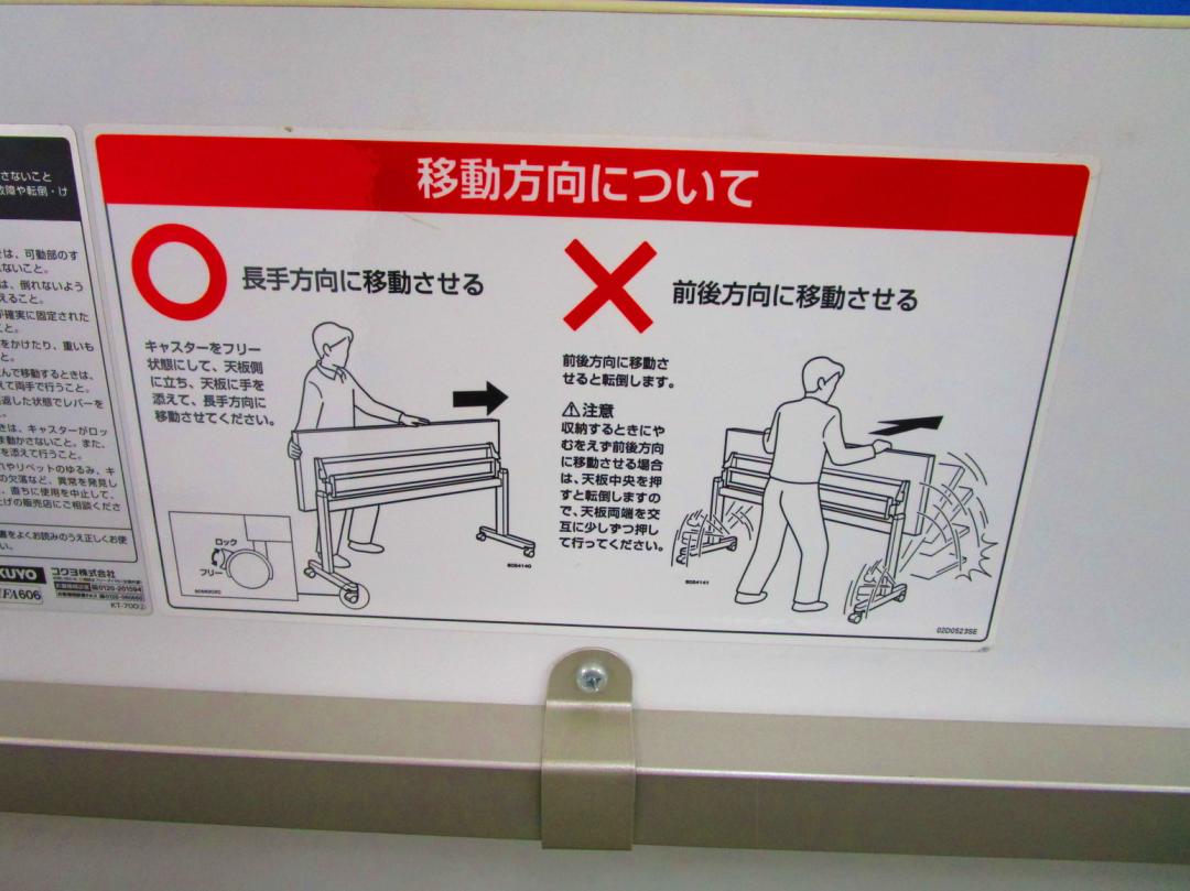 - 一部不具合あり天板歪み、アジャスター無し、キャスター使用不可ようなそのテーブルの本来の効用を果たすための機能以外の一部が使用不可な状態。(例、キャスターロッ ク機能使用不可、棚板無し等がある。)
