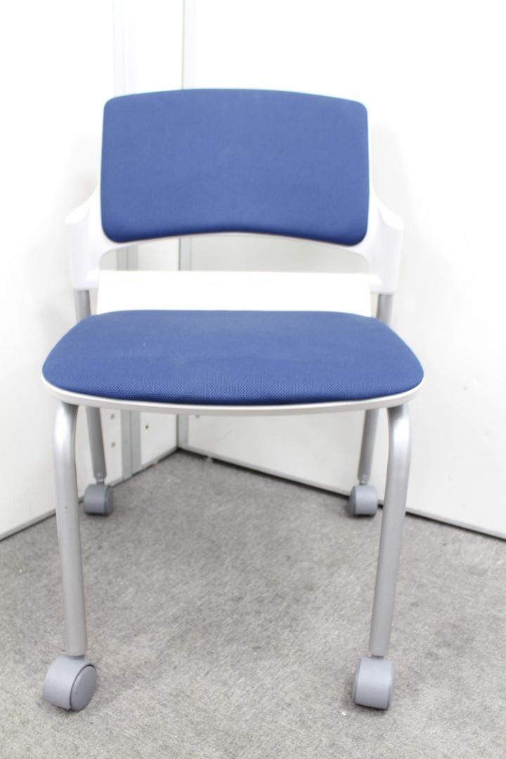 【残り2脚の為、お安く!】【キャスター付きで使いやすい!ミーティングに最適!】■ウチダ(UCHIDA)製 MF-180シリーズ スタッキングチェア ミーティングチェア ■キャスター付き ■レイズンブルー×ホワイトシェル