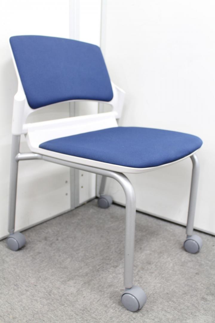 【キャスター付きで使いやすい!ミーティングに最適!】■ウチダ(UCHIDA)製 MF-180シリーズ スタッキングチェア ミーティングチェア ■キャスター付き ■ブルー×ホワイトシェル【2509】弊社使用欄【A01032801】