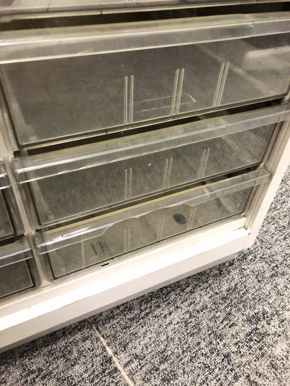 - 一部不具合ありそ引出の開閉不可、施錠不可、棚板無しといったの書庫の本来の効用を果たすための機能以外の一部が使用不可(例、扉、引出の開閉がしづらいなどがある。 )