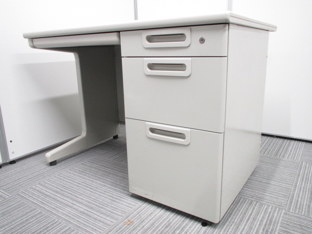 ※奥行要確認!【収納とワークスペースの両立!横幅1000㎜サイズ!】■プラス(PLUS) LAデスクシリーズ 片袖机 W1000×D600㎜ ■ニューグレー ■シリンダー錠【2508】弊社使用欄【A01031273】