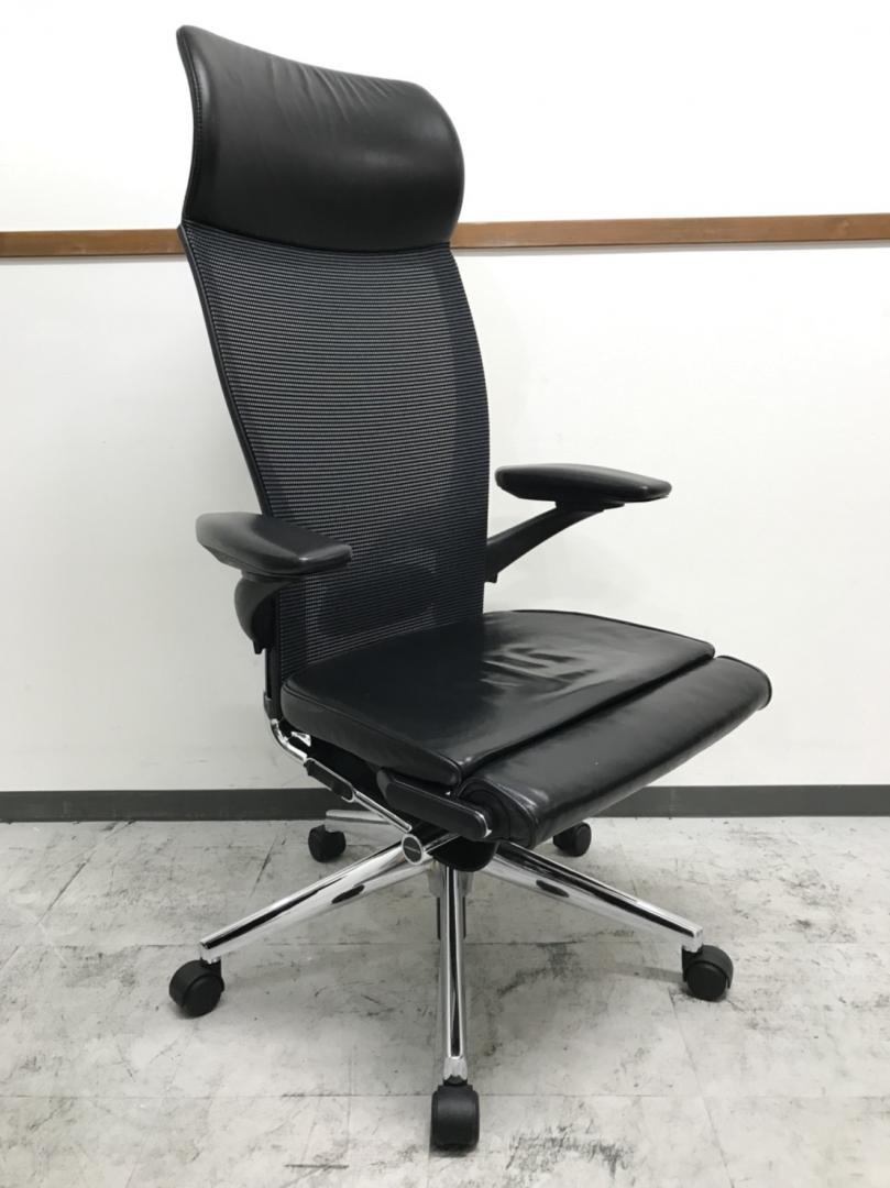 見た目と機能ともに美しいエグゼクティブチェア|ヘッドレスト付き 背メッシュ座布張り- 新大阪店