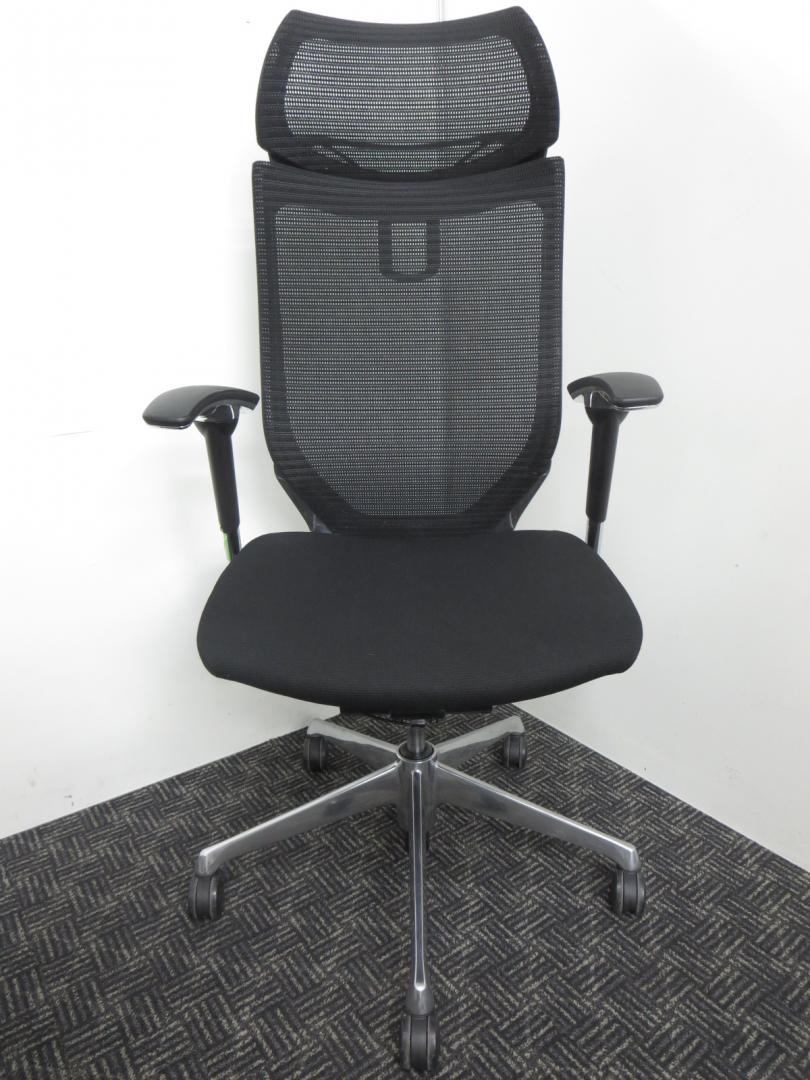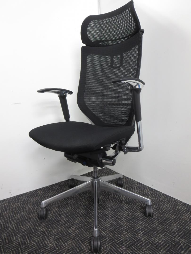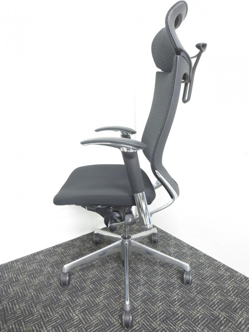 【オフィスの執務室、会議室におすすめ!】■オカムラ(okamura)製 バロン(Baron)チェア 肘付き ハイバック ■背・座面メッシュ ■可動肘 ■ヘッドレスト付き ■ブラック【硬めの座面が大人気!国産メッシュチェアの代表格!】