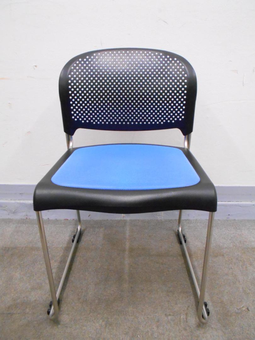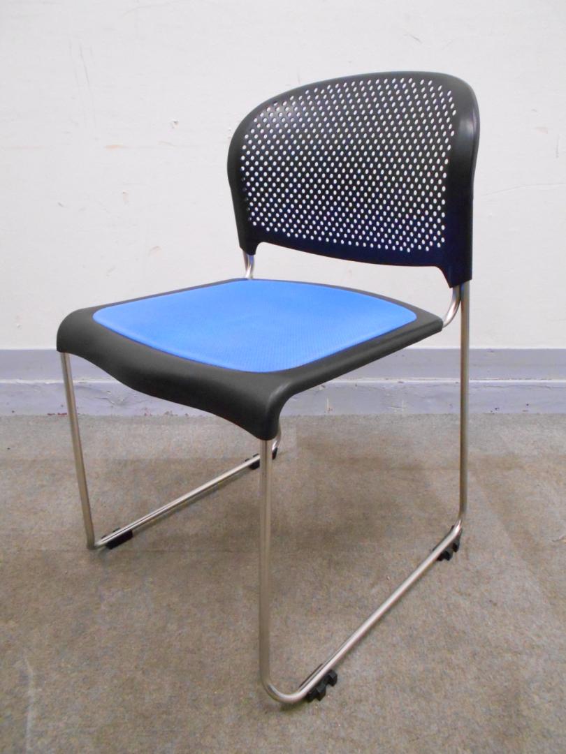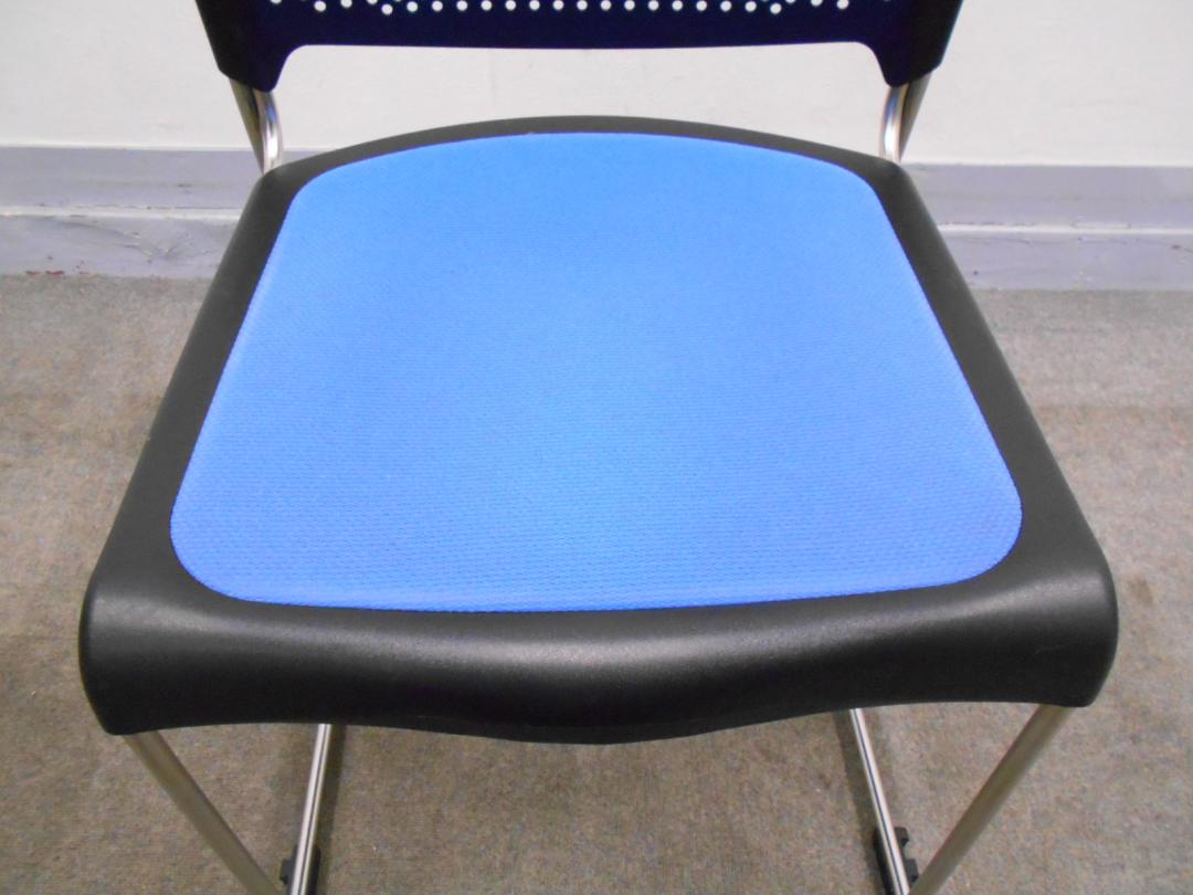 【KS】[セット買いがおすすめ!][重ねて省スペース!!]オカムラ製スタッキングチェア 一番人気のブルー 事務用会議椅子 ミーティングチェア- 茨城南店