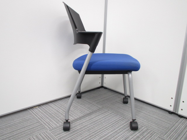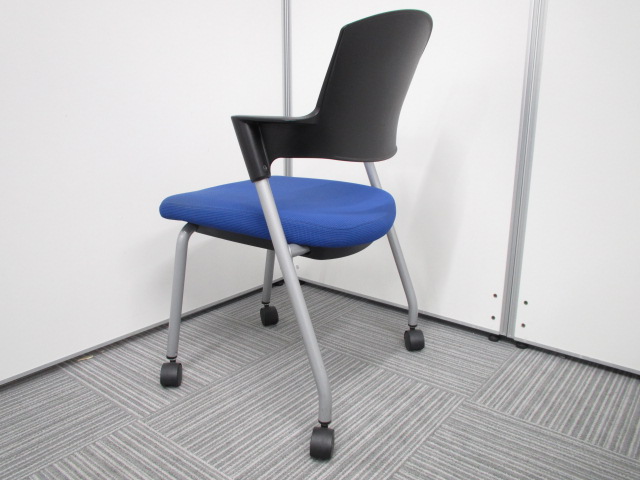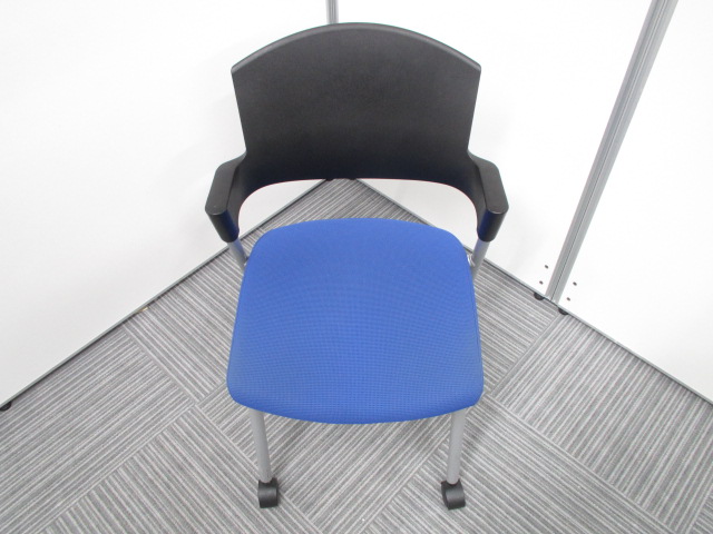 【シンプルスマートなスタッキングチェア!分厚いクッションで長時間でも快適な座り心地!】■コクヨ(KOKUYO)製 プロッティ (Protty) 肘付 ミーテイングチェア スタッキングチェア ■固定肘 ■ブルー×ブラック ■背面ヌードタイプ