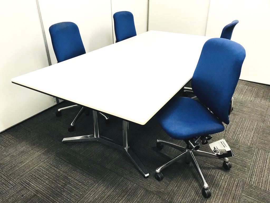 【セット品の為、10%OFF!】【脚のデザインが特徴的な大型テーブル+ゼファーチェア×4脚セット】4~6名様の応接室、会議室にオススメ!- 春日部・越谷店