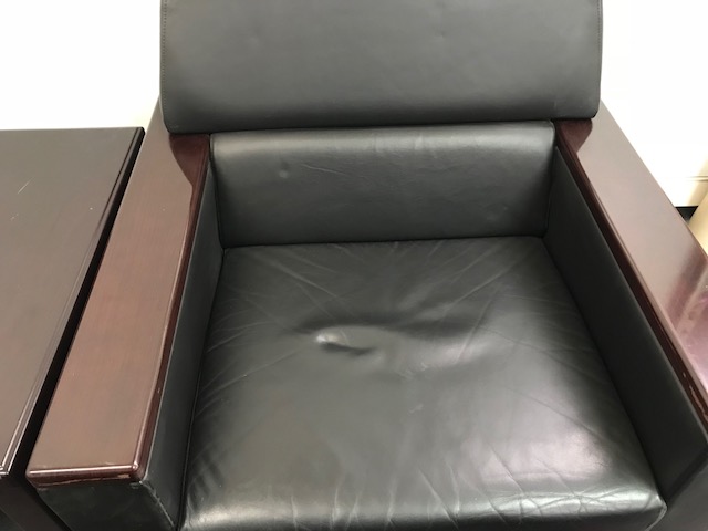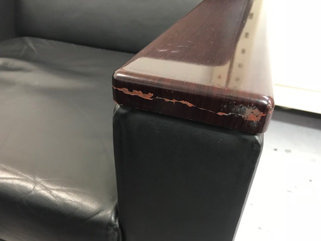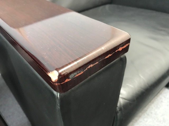 - あり黄ばみ・変色が広い範囲にうっすらある、または濃い黄ばみ・変色が一部ある。(例:三人用ソファ、二人用ソファ、一人用ソファの場合、背もたれ、肘かけ、座面等、 センターテーブルの場合、天板、脚にある。)