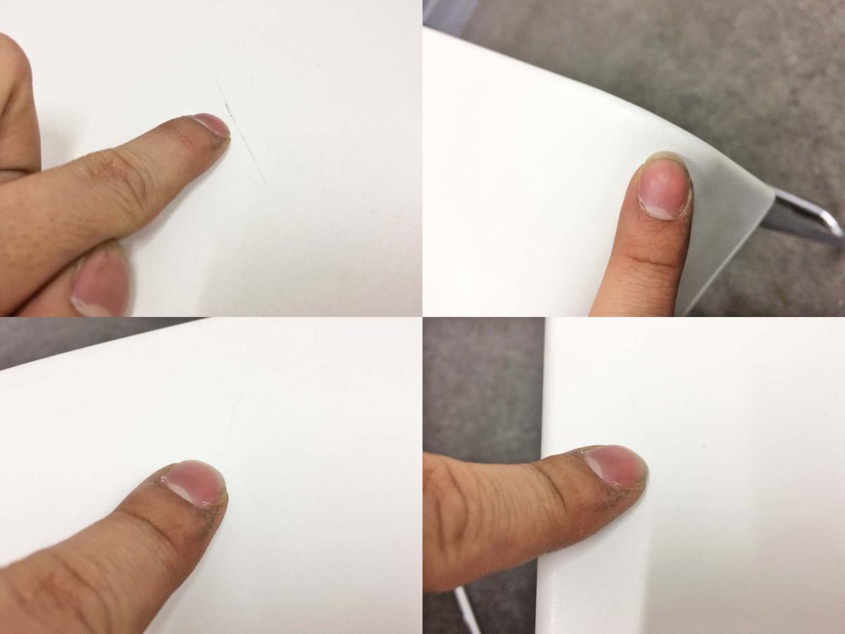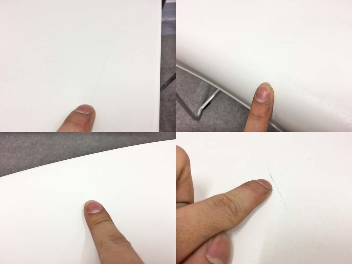 - 目立つ箇所あり傷・破れ・ほつれ・へたり・しわが多数または深い傷・破れ・ほつれ・へたり・しわが一部ある。※座面・背もたれ、シェル、脚部等にある。