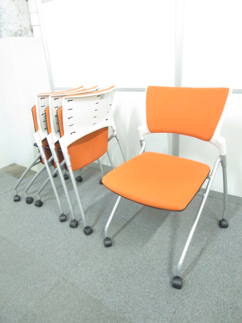 【ITOKI MANOSS】■ネスティングチェア オレンジ■収納便利な水平スタックタイプ- 川崎店