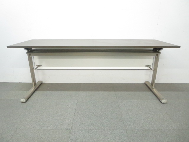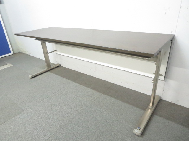 【ハイグレードな空間を演出!】■コクヨ サイドスタックテーブル(幕板付)■W1800×D600mm(ブラウン)- 川崎店