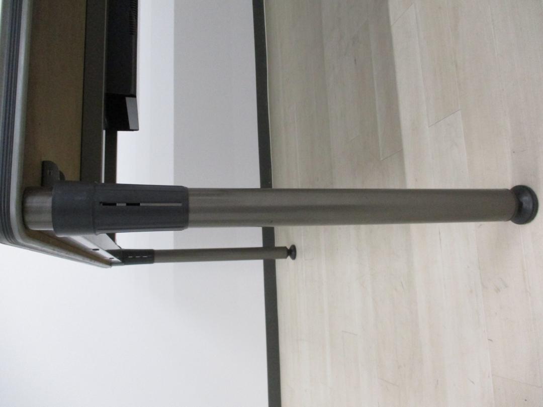 - 一部不具合あり天板歪み、アジャスター無し、キャスター使用不可ようなそのテーブルの本来の効用を果たすための機能以外の一部が使用不可な状態。(例、キャスターロッ ク機能使用不可、棚板無し等がある。)