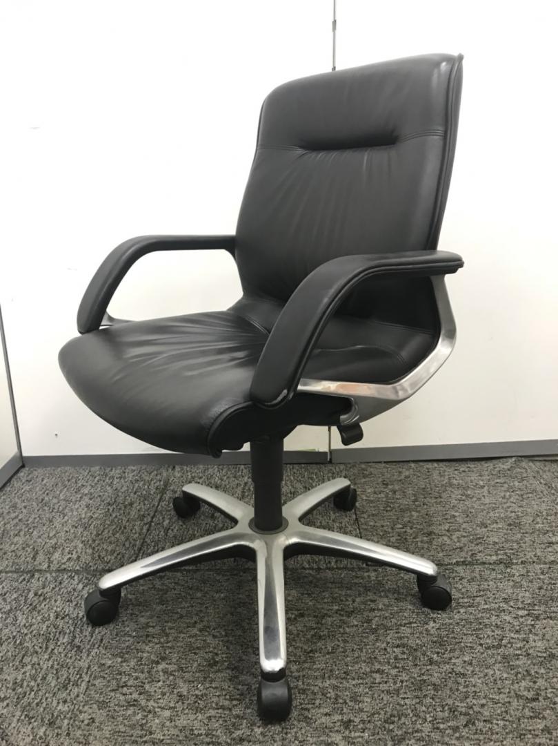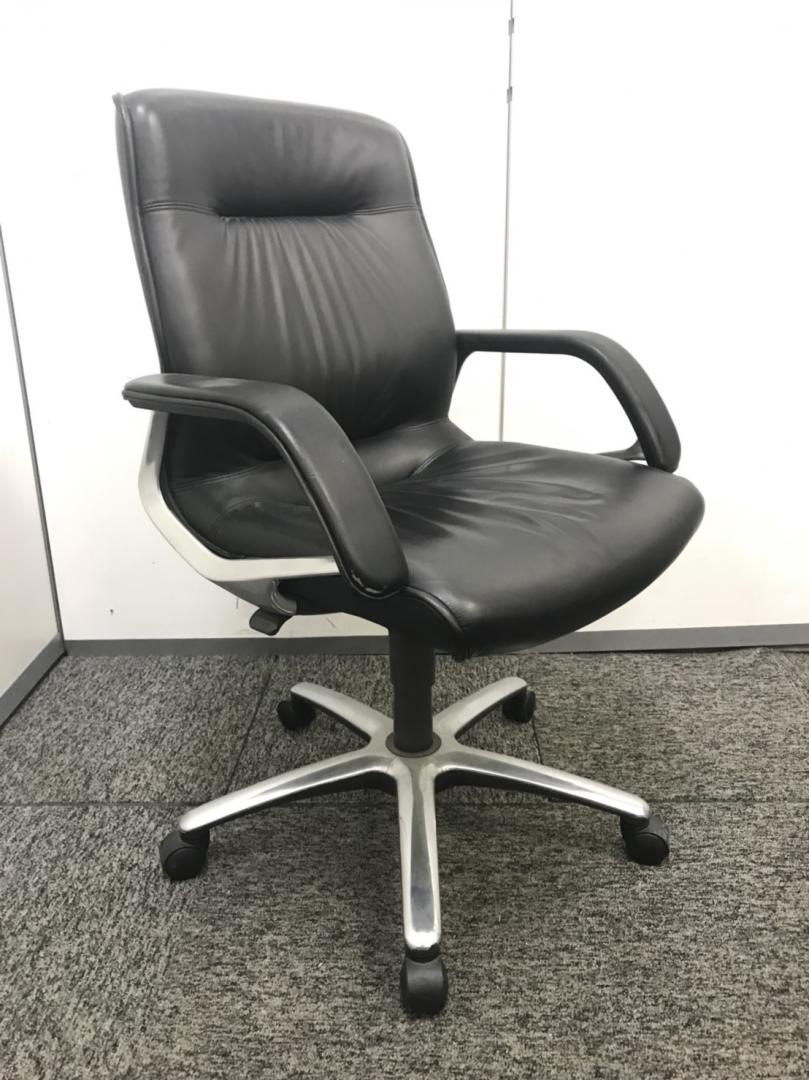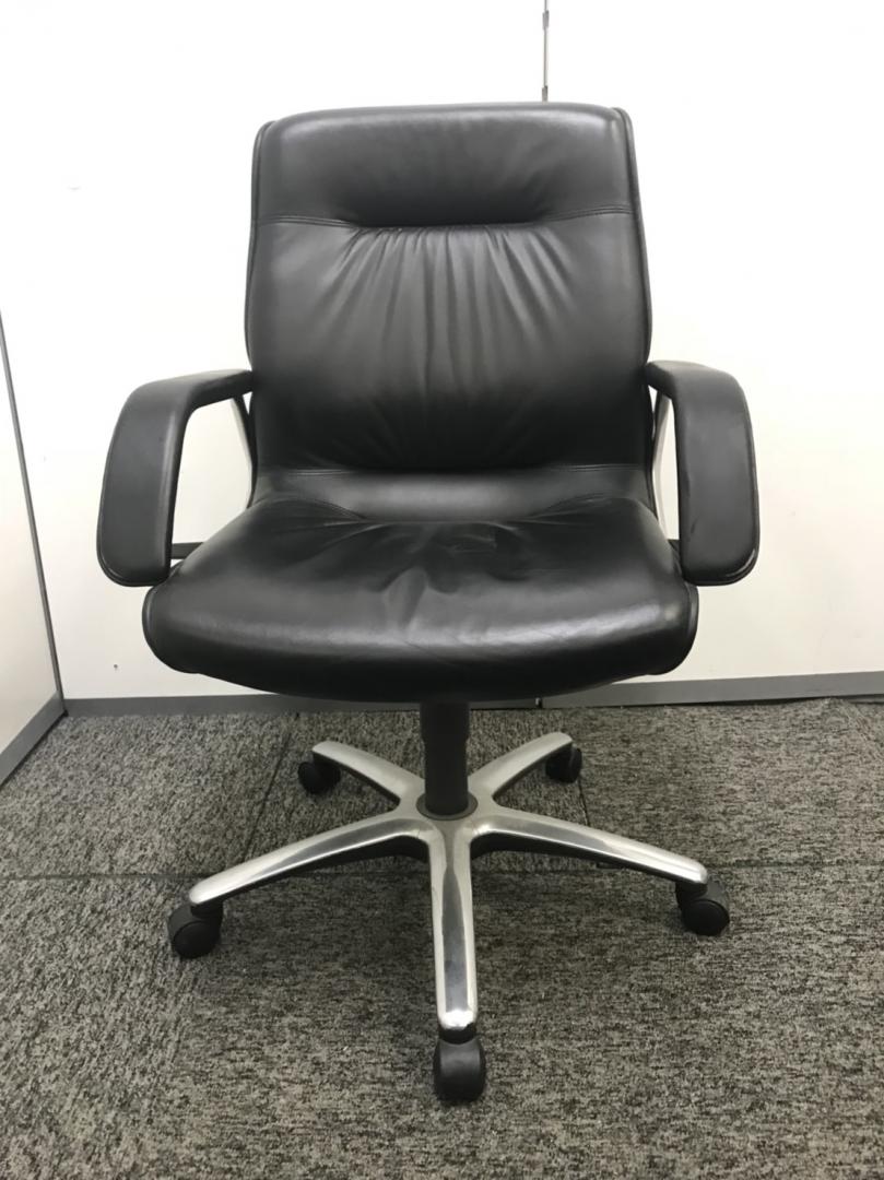 【本格派の高級革張りチェア入荷!】■オカムラ製 エグゼクティブチェア ブラック ■上質な空間にフィットする風格のあるデザイン!【役員用】【社長椅子】