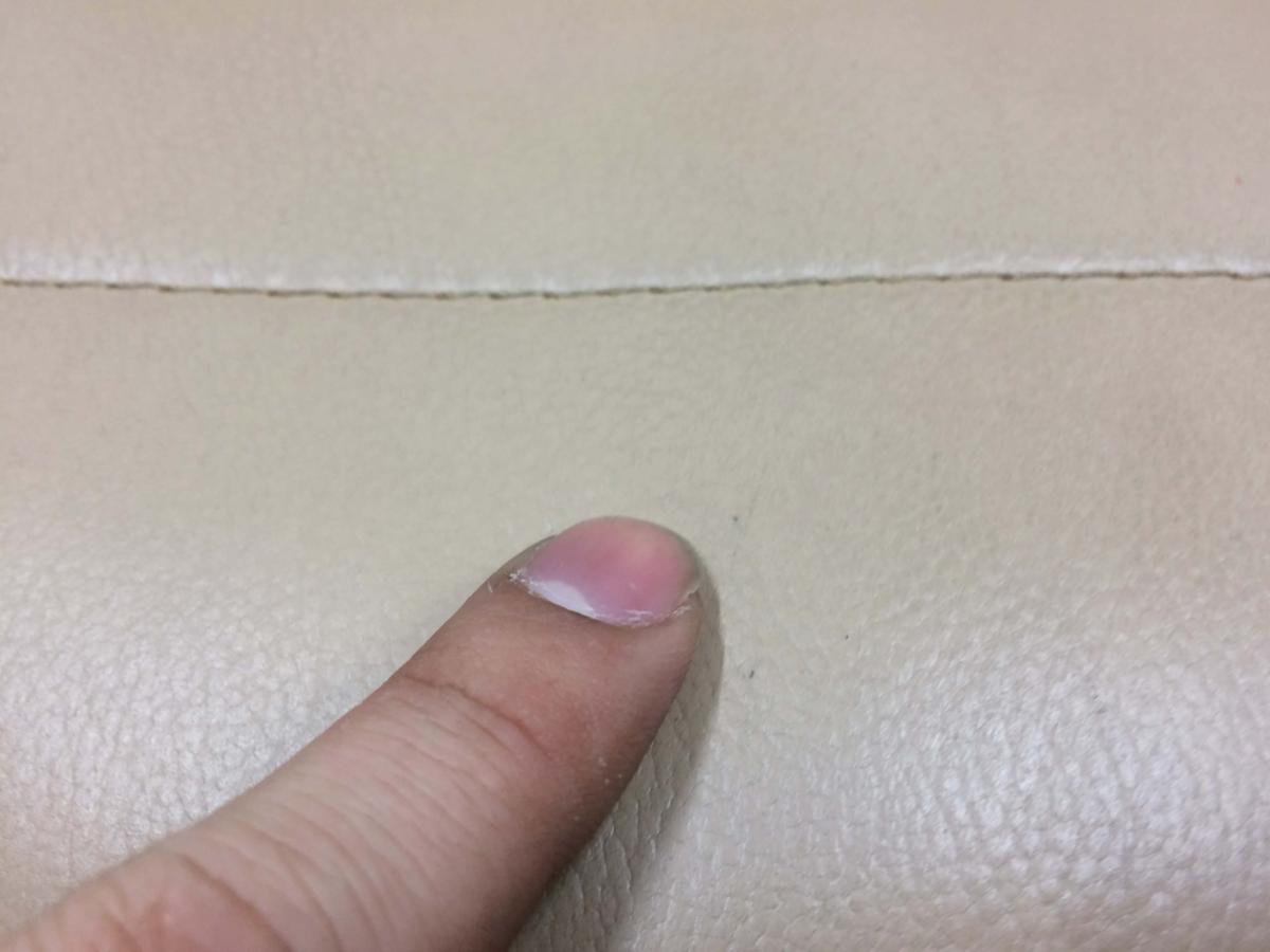 - あり黄ばみ・変色が広い範囲にうっすらある、または濃い黄ばみ・変色が一部ある。(例、座面・背もたれ、脚部等にある。)