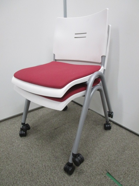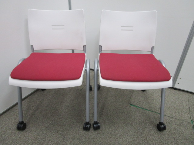 【シンプルチェア2脚セット】ホワイト主体チェア【重ねてスペース省略】- 池袋店
