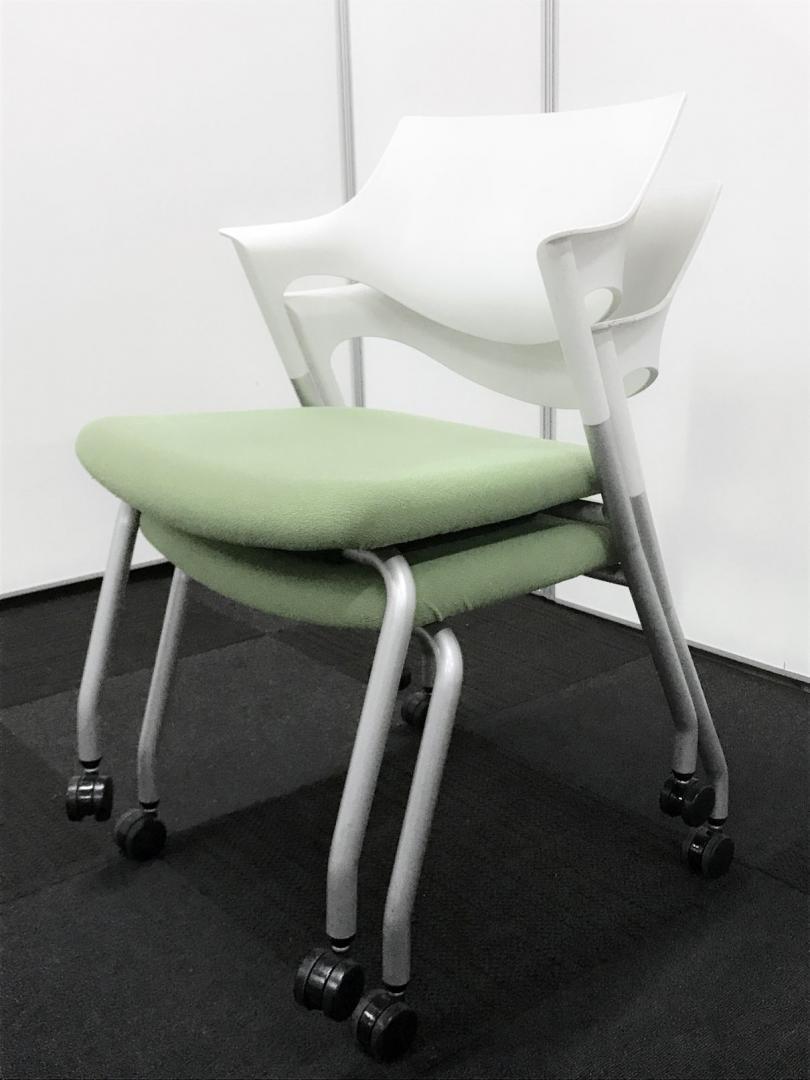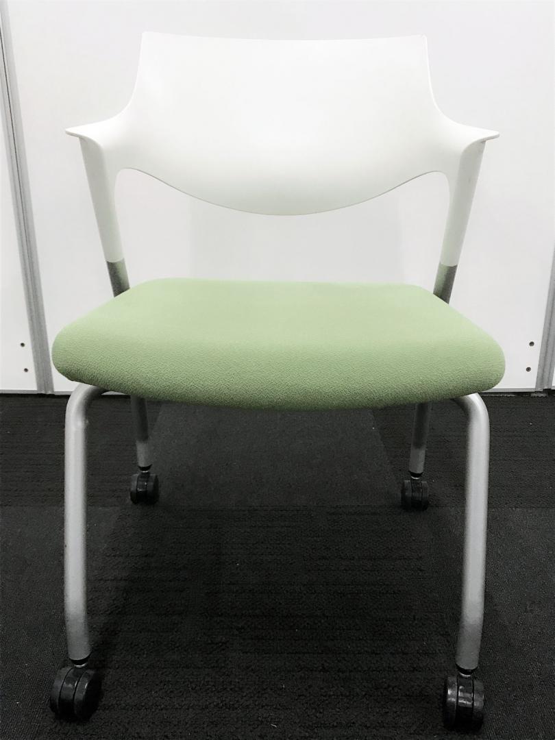 【落ち着いたグリーン!】ホワイトの背凭れが眩いスタッキングチェア【キャスター付!】- 立川・八王子店