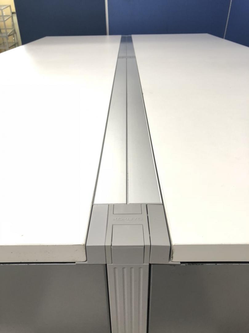 【8名分のデスクが一気に揃ってしかも安い!】オカムラ製フリーウェイ【幅4800】【2400幅天板×4枚】組立が簡単なのにガッチリしている!天板がホワイトでオフィスが明るく華やかに!【脚:シルバー】【中古オフィス家具】【さいたま市】- 埼玉本店