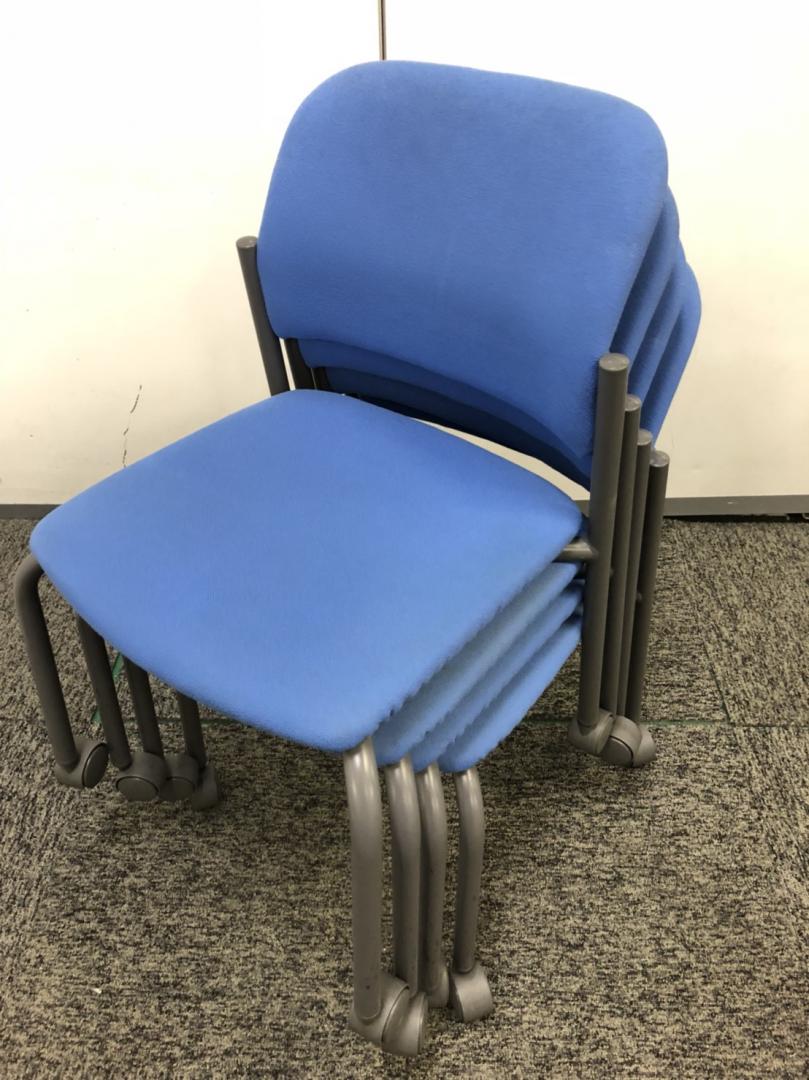 【4脚セット】スタッキングチェア/コクヨ製 定番のブルー【キャスター付き】- 大阪梅田本店