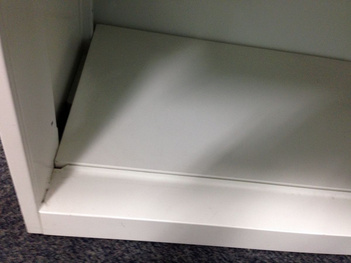 - 壊れている引出の開閉不可、施錠不可、棚板無しといったその書庫の本来の効用を果たすための機能に不具合がある(例、扉、引出の開閉が行えない。)