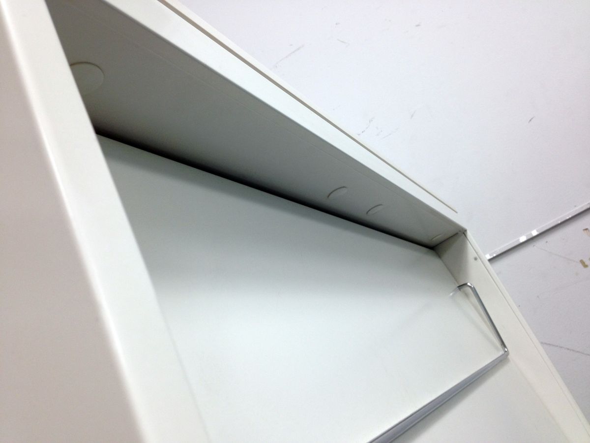- 多数不具合あり引出の開閉不可、施錠不可、棚板無しといったその書庫の本来の効用を果たすための機能以外の多数が使用不可(例、扉、引出の開閉がしづらいなどがある。 )