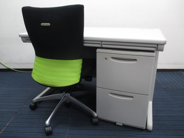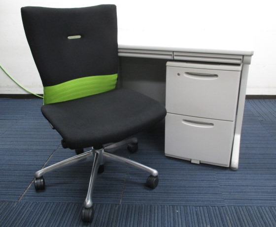 オカムラ製SDシリーズの平机と2段ワゴンの、片袖机風セットです。