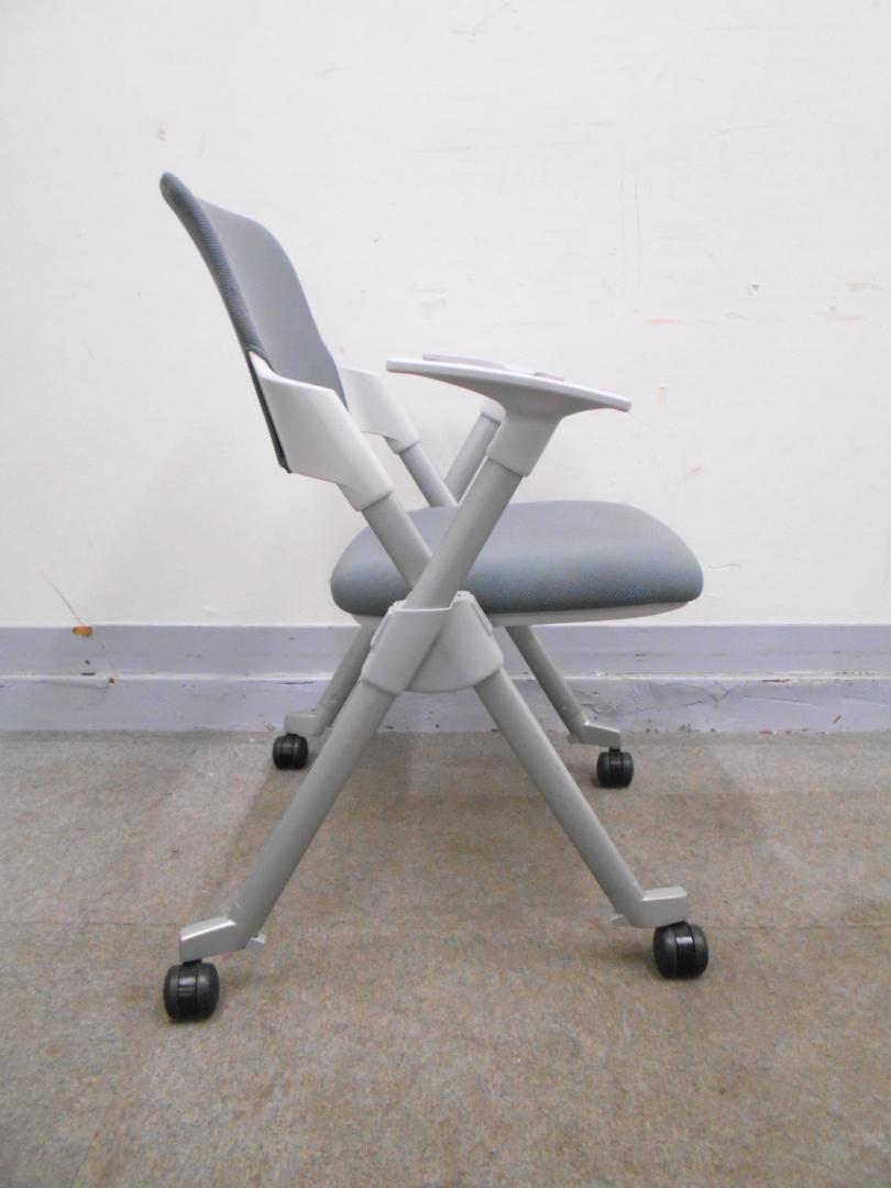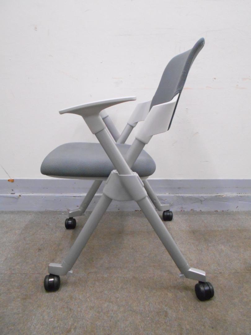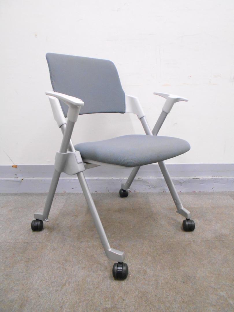 【KS】[2通りの収納法でかなり便利!]会議用椅子 ミーティングチェア 上に重ねて収納&買い物かごカートのように並べて収納も可能!- 茨城南店
