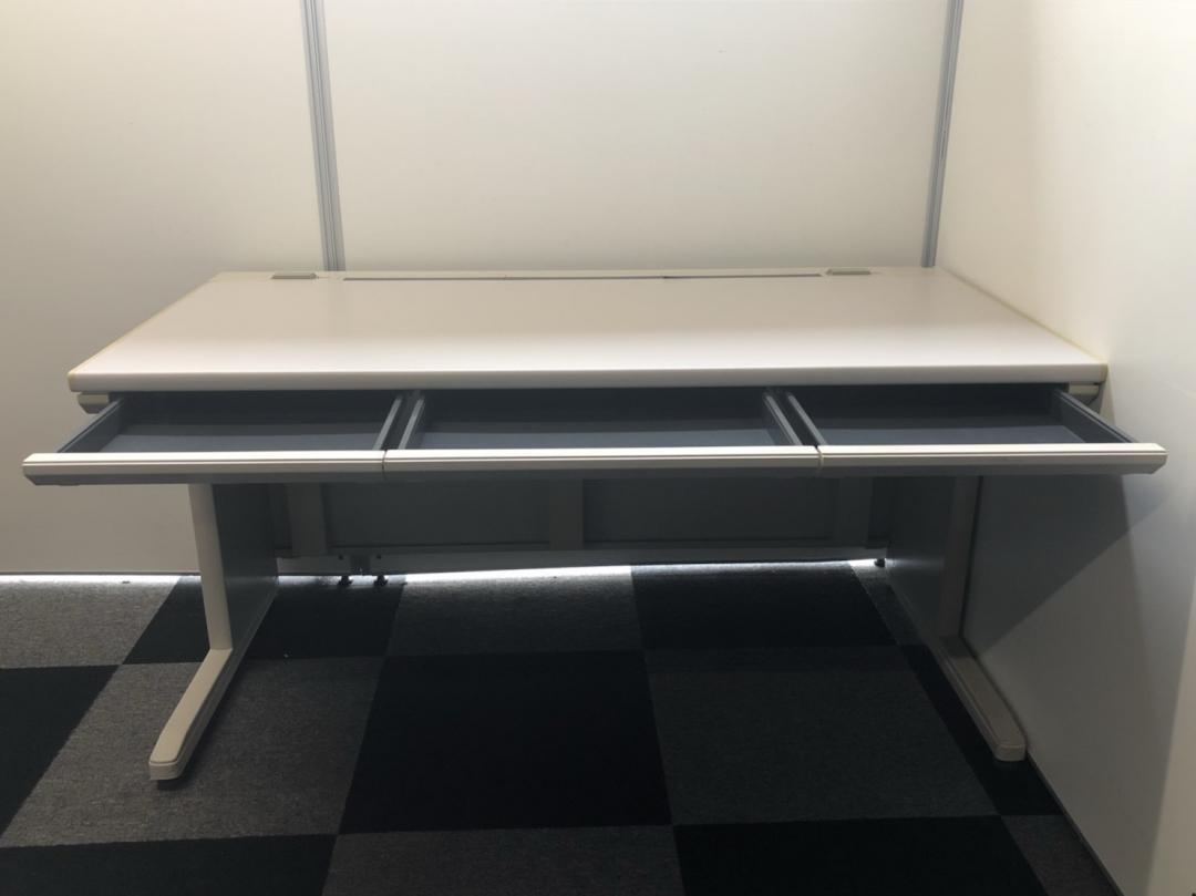 1400mmと大き目で広々とお使いいただけ、コンセントタップ、配線ダクト、浅めな引き出し3つ