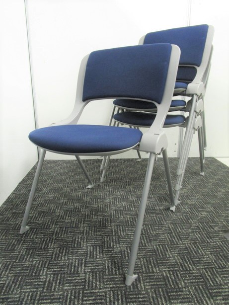 【お得な4脚セット販売】内田洋行(UCHIDA、ウチダ)製 ブルー 美品 重ねられる MX-42【中古オフィス家具】【さいたま市】- 埼玉本店