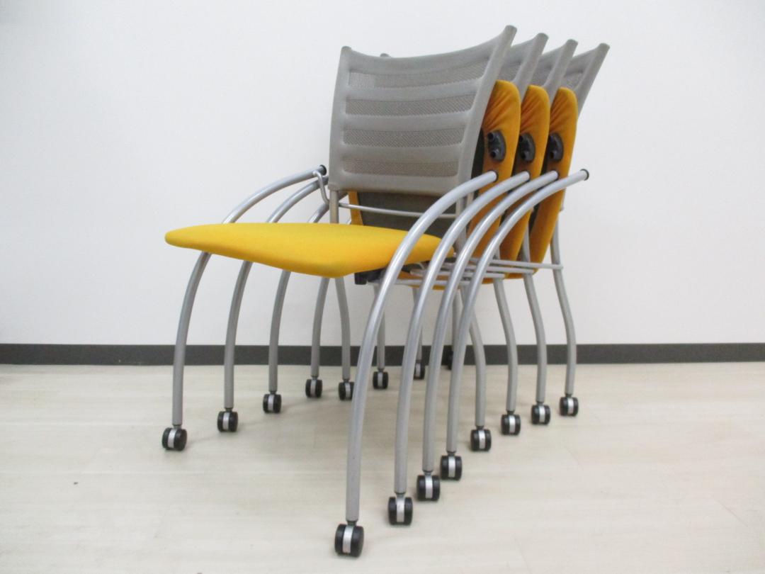 【8脚入荷】オフィスに栄えるマンダリンオレンジ!一流メーカーなのにこの価格!重ねて収納できるので省スペースを実現!- つくば店