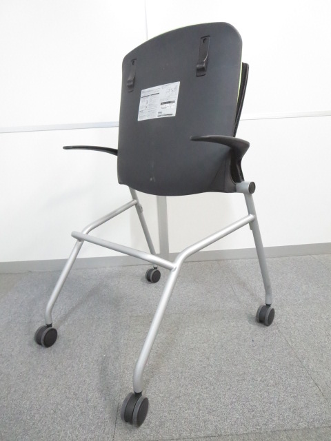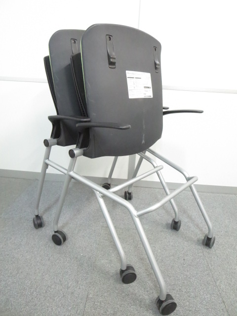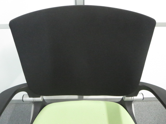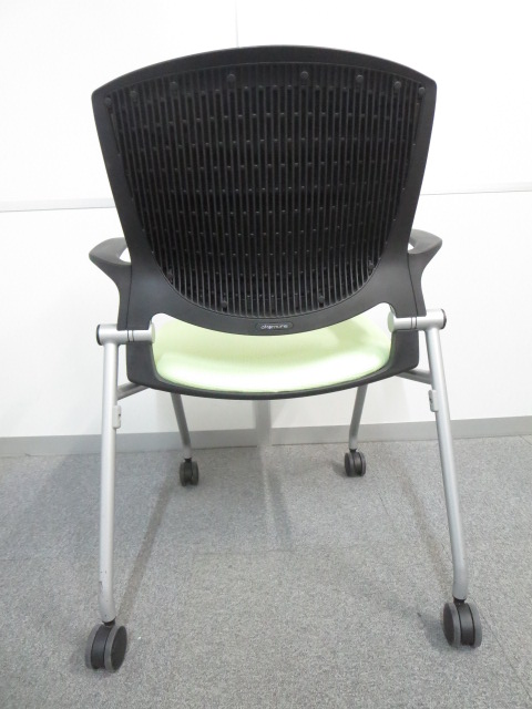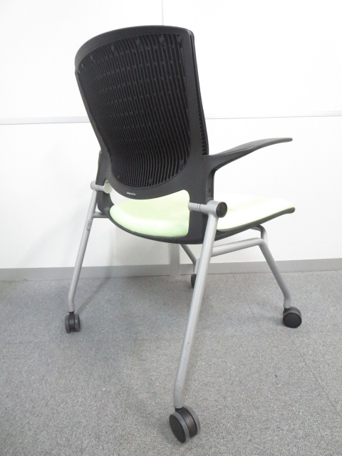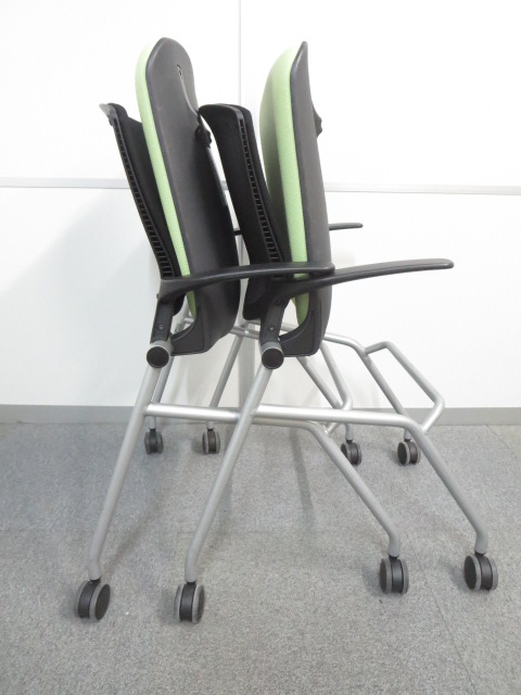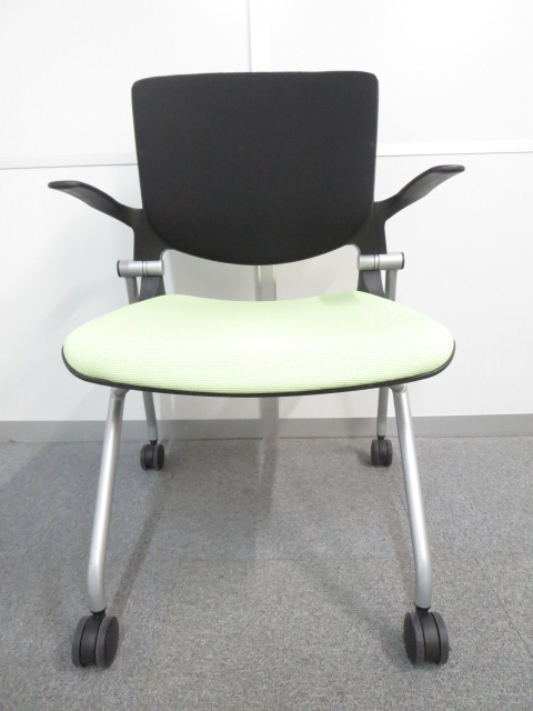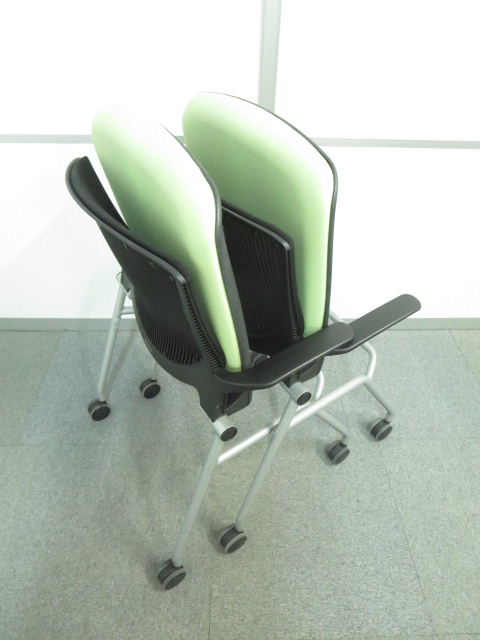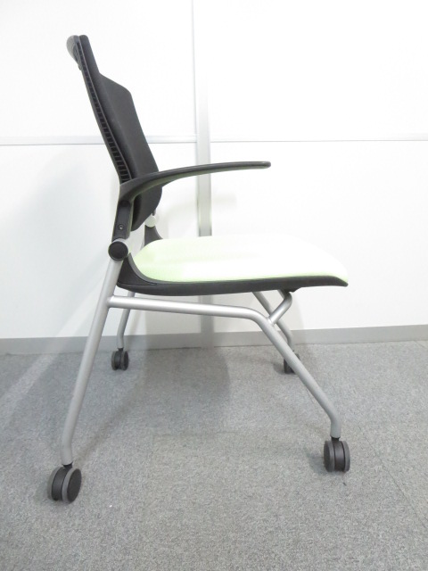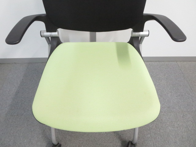 【厚みのあるクッションで長時間の会議も快適!】■オカムラ グラータ(Grata)■ネスティングチェア 肘付【ピスタチオグリーン】- 川崎店
