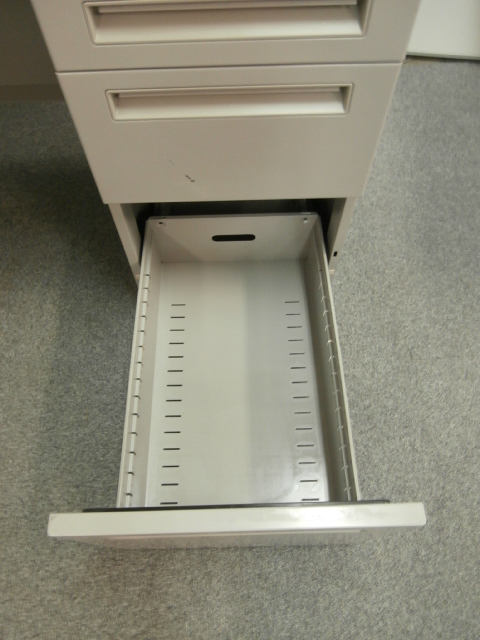 - シンプルながらも使いやすい工夫があります。ロックは、一度の施錠ですべての引出しの鍵がかかるオールロック機構。