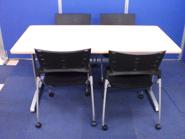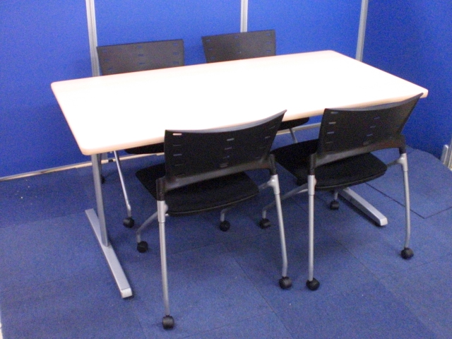 [単品購入¥44,000⇒セット購入¥41,000]オカムラ ミーティングテーブル+イトーキ ミーティングチェア4脚セット■国内有名メーカーのミーティングセット!!ナチュラル×ブラック- 足立・葛飾店
