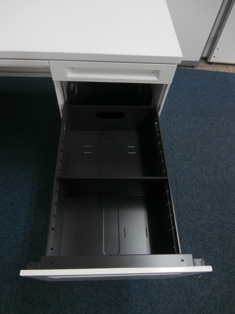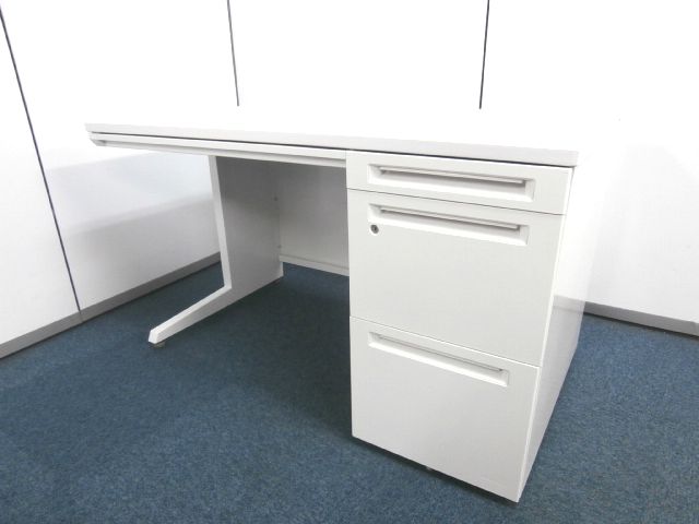 ホワイト色の片袖机、オカムラ製のアドバンスシリーズ。