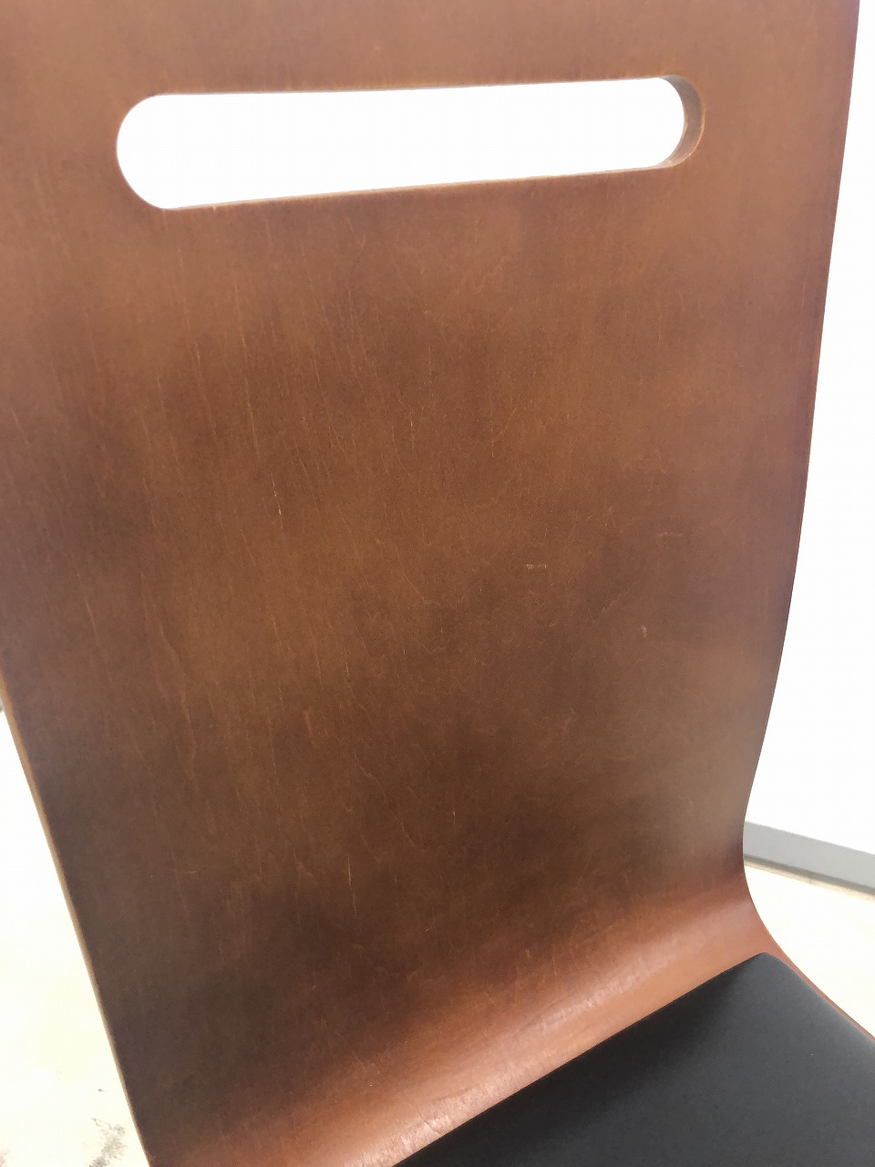 - あり黄ばみ・変色が広い範囲にうっすらある、または濃い黄ばみ・変色が一部ある。(例、座面・背もたれ、脚部等にある。)