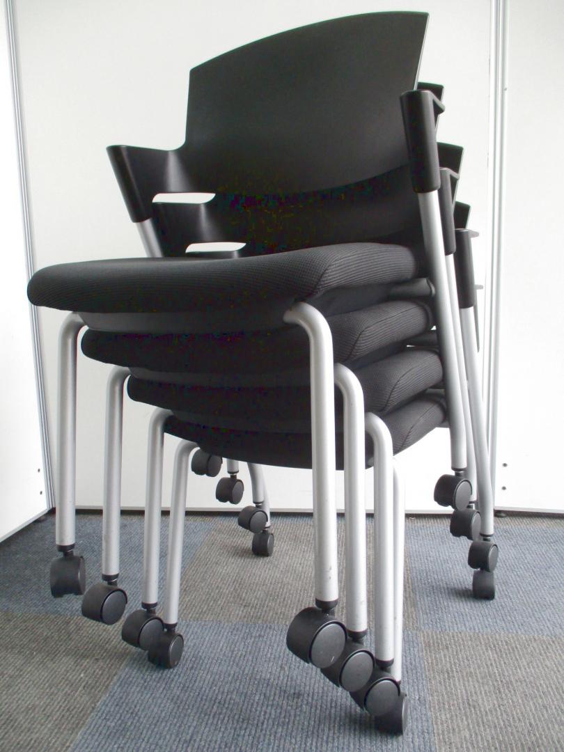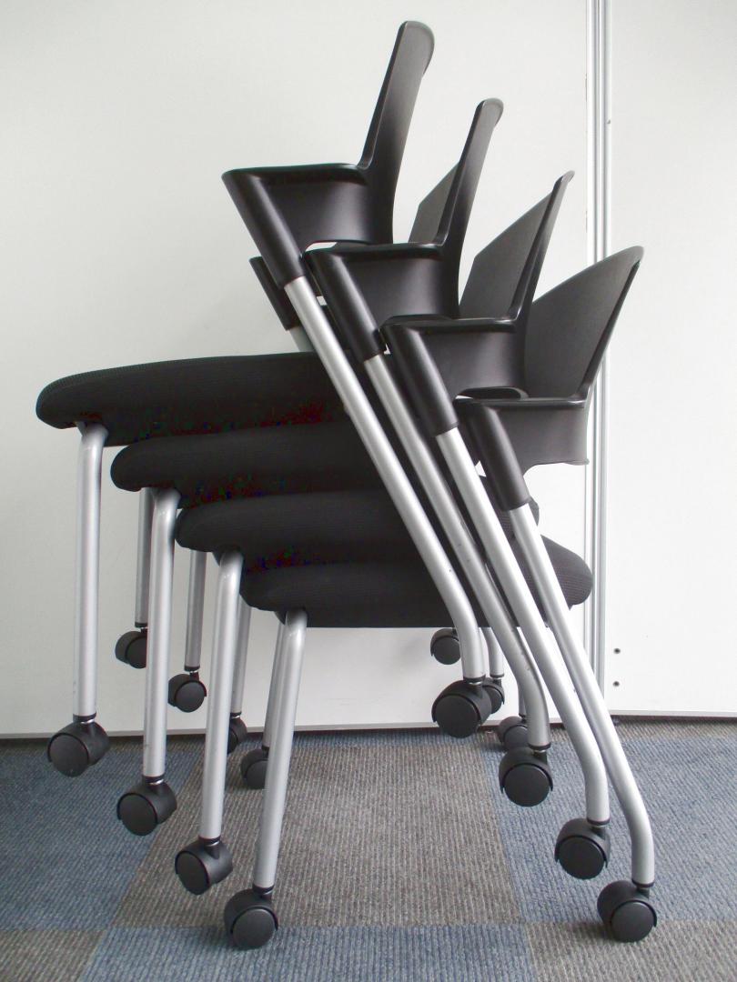 【大人気ミーティングチェア!】4脚重ねて収納可能!【便利なキャスター付】- 千葉店