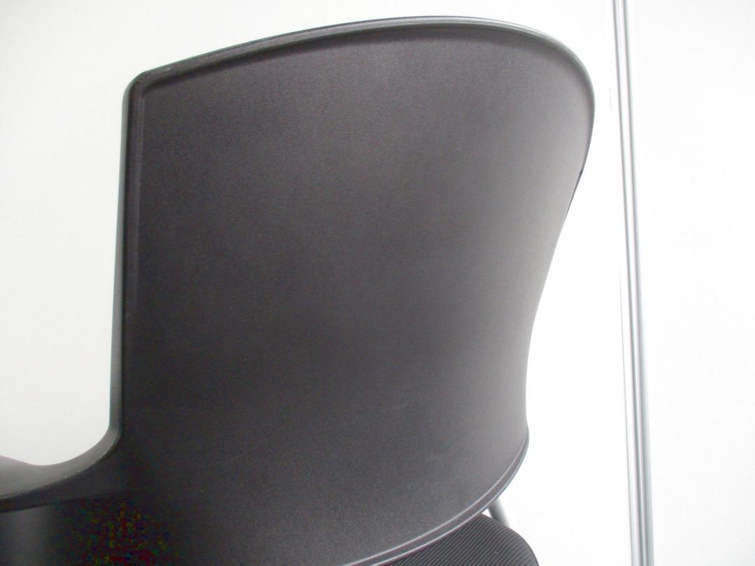 【シンプルスマートなスタッキングチェア!分厚いクッションで長時間でも快適な座り心地!】■スタッキングチェア 肘付ミーティングチェア ■固定肘 ■キャスター付 ■ブラック ■背面樹脂/コクヨ(KOKUYO/プロッティ
