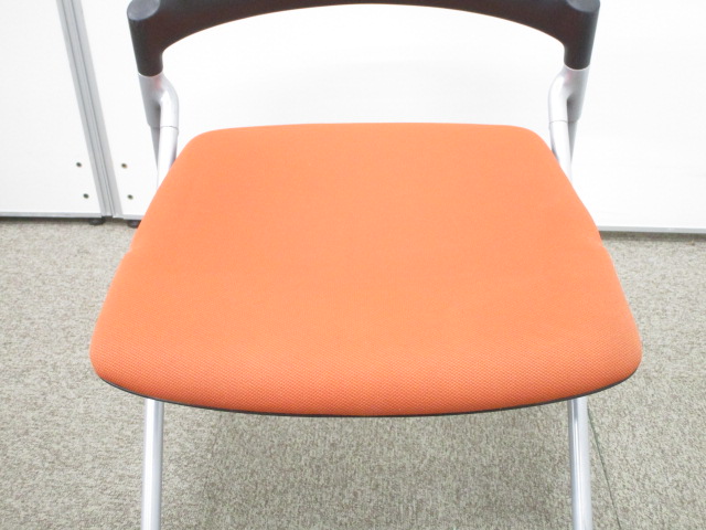 【明るいオレンジカラーが事務所を明るく彩ります!】座面跳ね上げ式の収納性も抜群のネスティングチェアです!【スタック】- 池袋店
