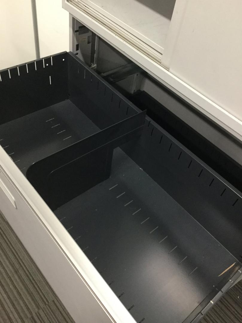 - 一部不具合ありそ引出の開閉不可、施錠不可、棚板無しといったの書庫の本来の効用を果たすための機能以外の一部が使用不可(例、扉、引出の開閉がしづらいなどがある。 )