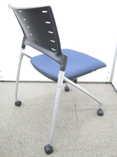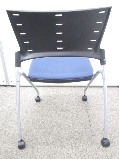 【定価6万円】【ソフトベンディングシェルが背を優しく受け止める!】■イトーキ(ITOKI) マノスチェア(MANOSS) 肘無し スタッキングチェア ミーティングチェア ■背パッド付 ■キャスター脚 ■ブルー