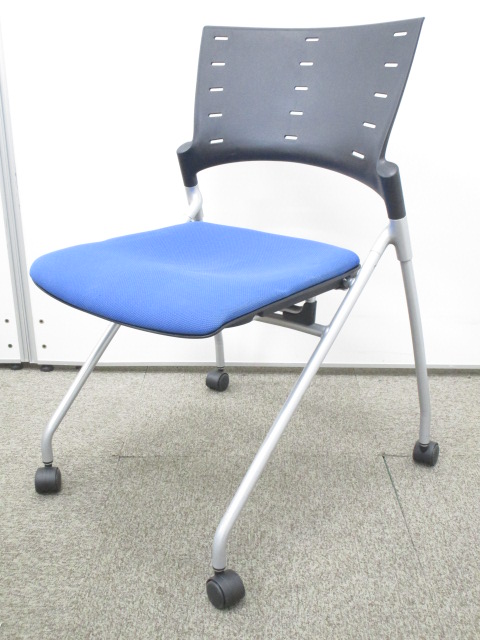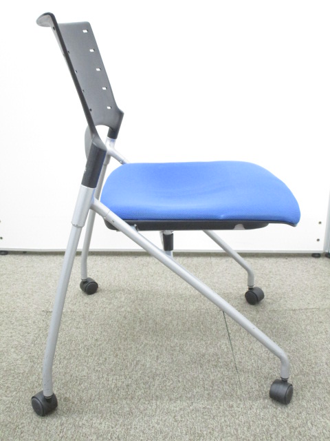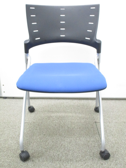 【定価6万円】【ソフトベンディングシェルが背を優しく受け止める!】■イトーキ(ITOKI) マノスチェア(MANOSS) 肘無し スタッキングチェア ミーティングチェア ■背パッド付 ■キャスター脚 ■ブルー