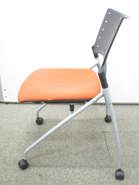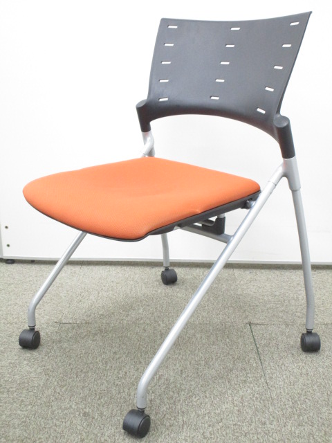 【セット品の為10%OFF】【移動するミーティングチェア×4脚セット!】座面が跳ね上げ式の為、収納式にもなる優れもの!【スタック】- 池袋店