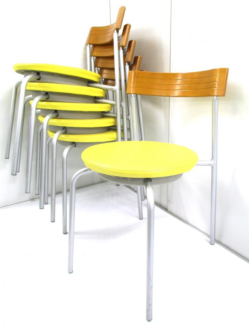 【6脚セット】カフェ風チェアでオシャレな事務所に■ポップで元気になるイエロー■頑丈!- 日本橋店