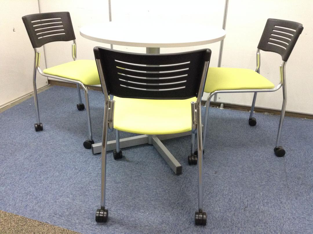 【スタッキングチェア3脚】×【丸テーブル1台】 リフレッシュルームにどうぞ- 京都東寺店