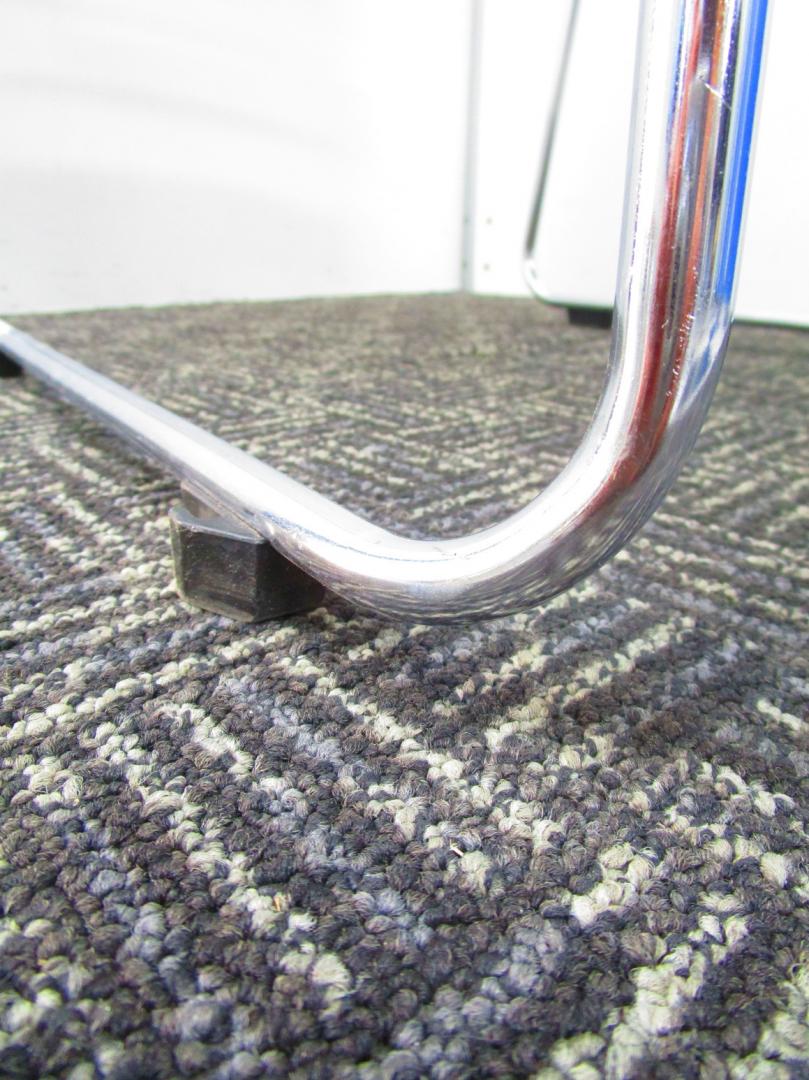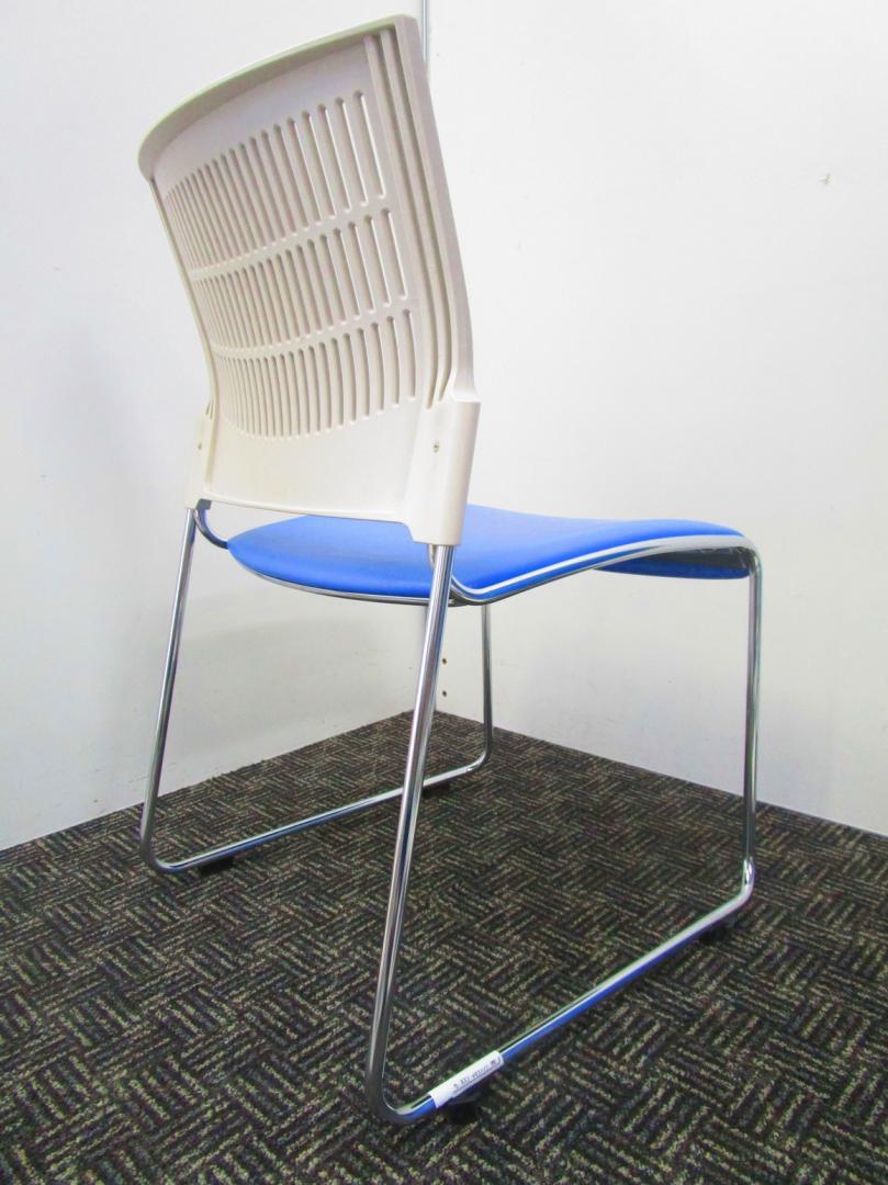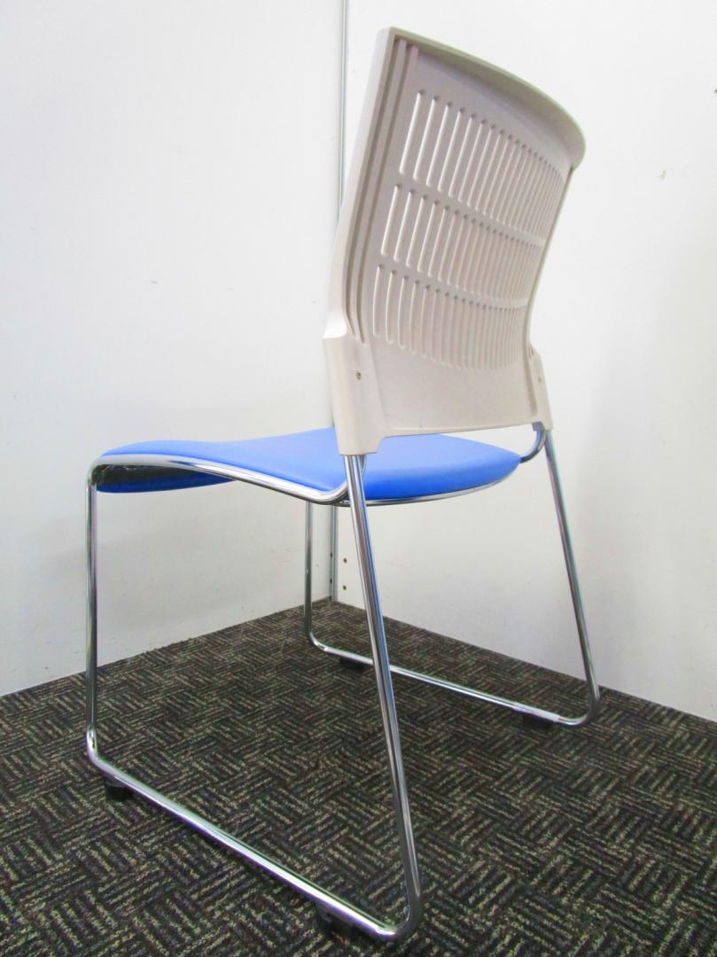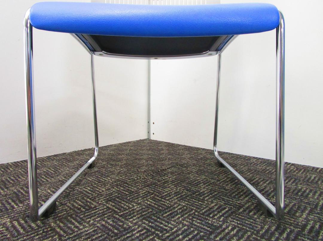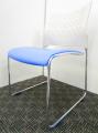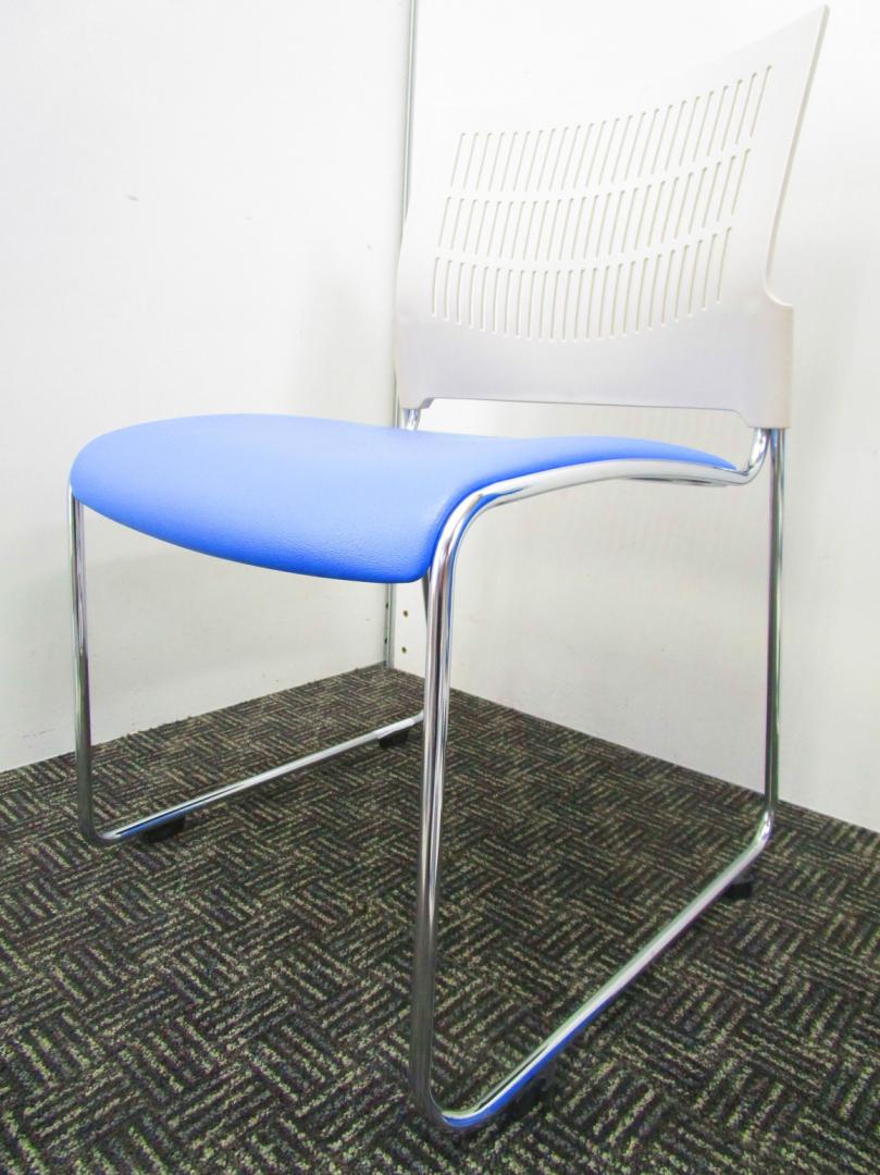 【省スペースで収納できる椅子】スタッキングチェア ミーティングチェア キャスター無し 休憩室 背もたれホワイト 座面ブルー 重ねられる 軽量 状態良好- 埼玉本店
