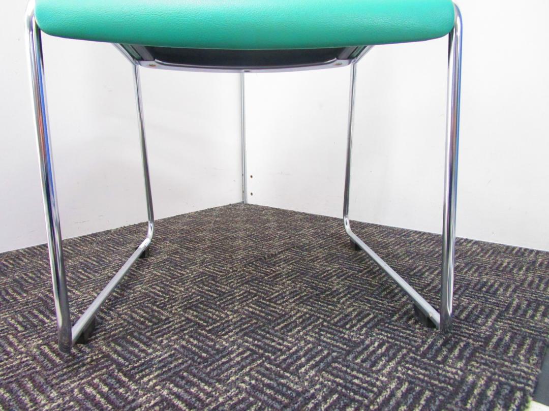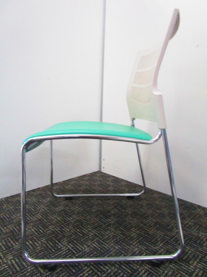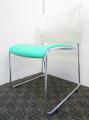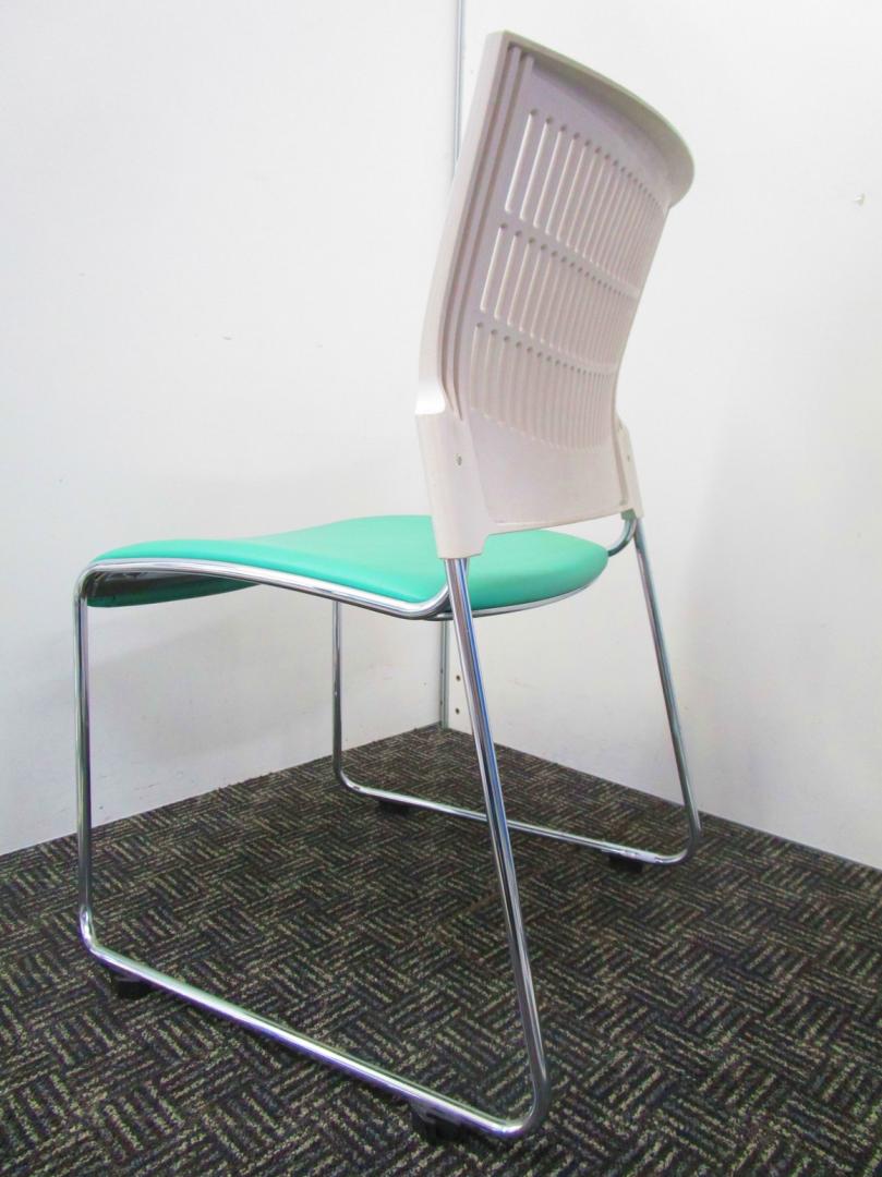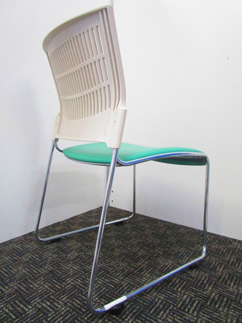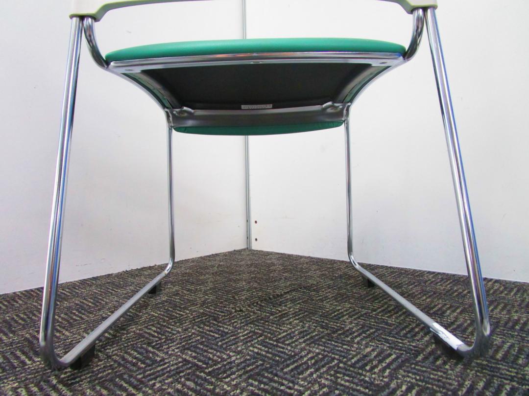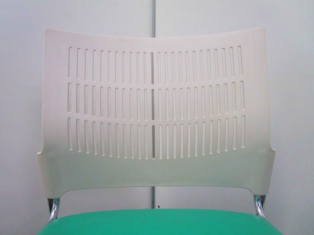 【あると便利な椅子】スタッキングチェア ミーティングチェア キャスター無し 休憩室 会議用 背もたれホワイト 座面グリーン 重ねられる 省スペース 軽量 状態良好- 埼玉本店