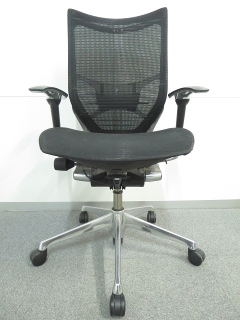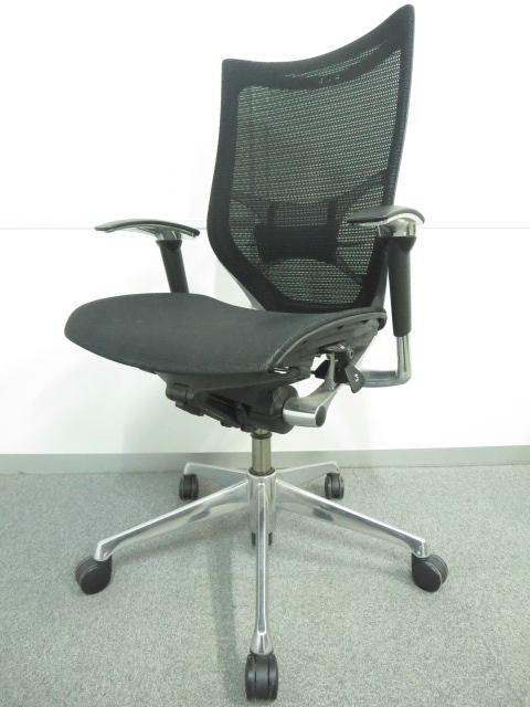 オカムラ バロン ハイバックモデル 背:メッシュ 座:クッション 張地:ブラック 脚:ポリッシュ アジャストアーム搭載