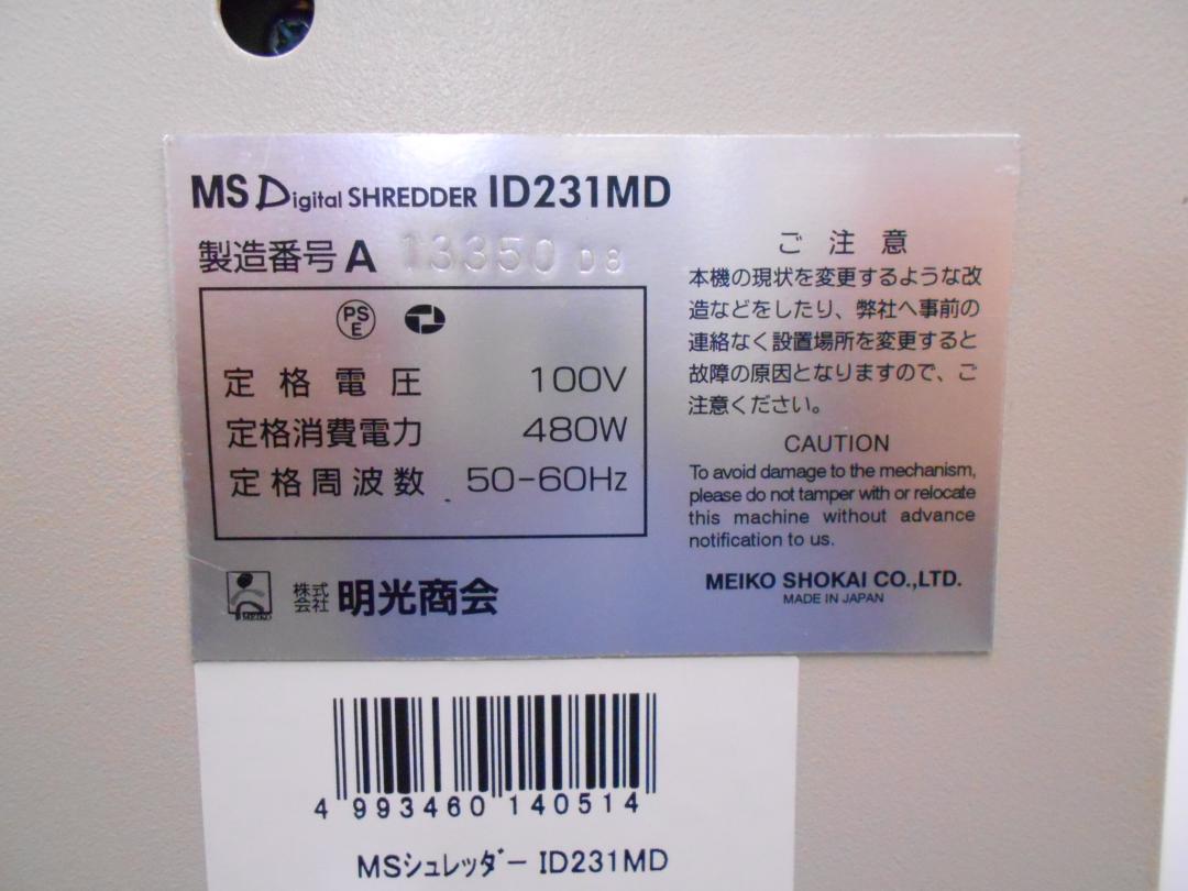 【中古】 MS-ID231MD 明光商会 シュレッダー 220606